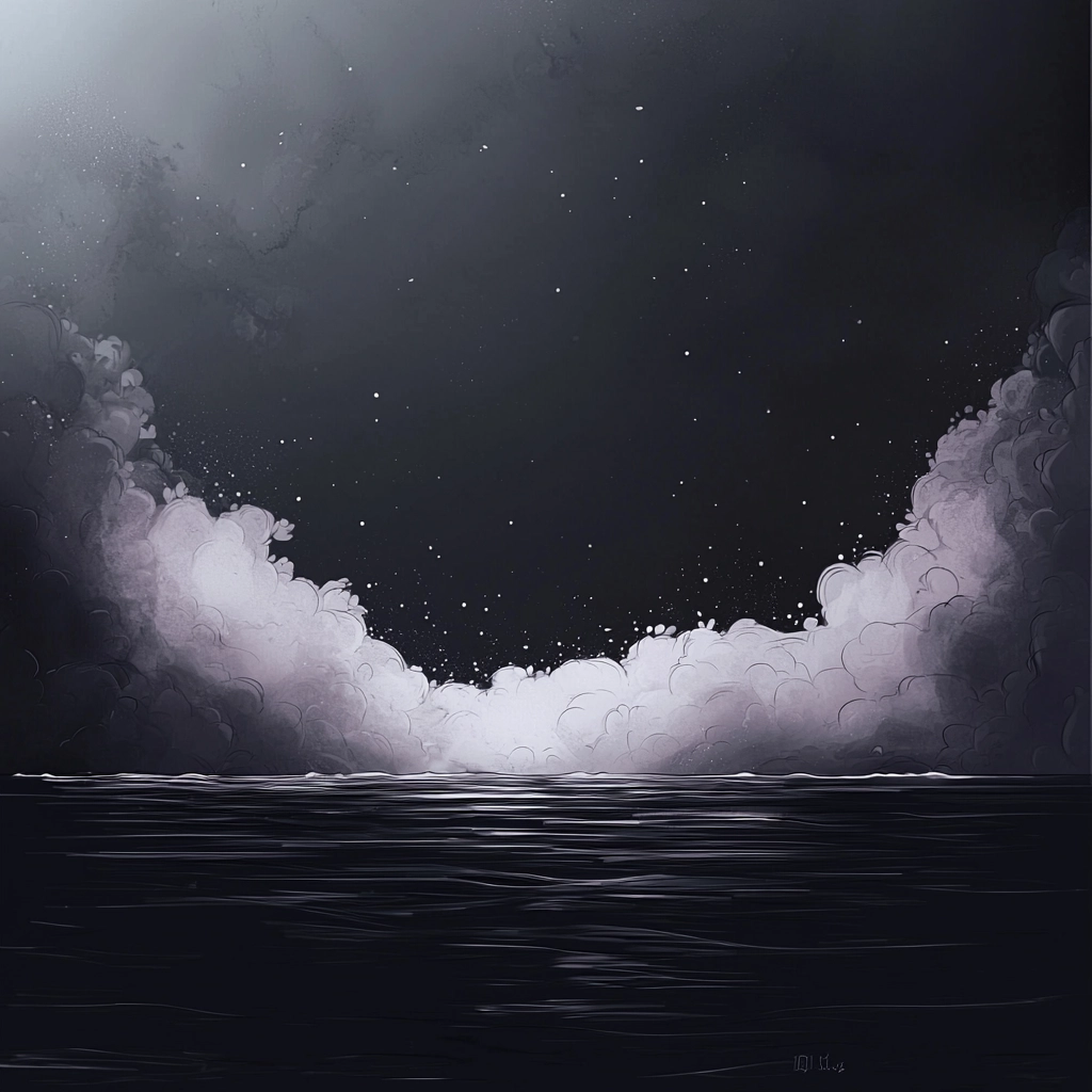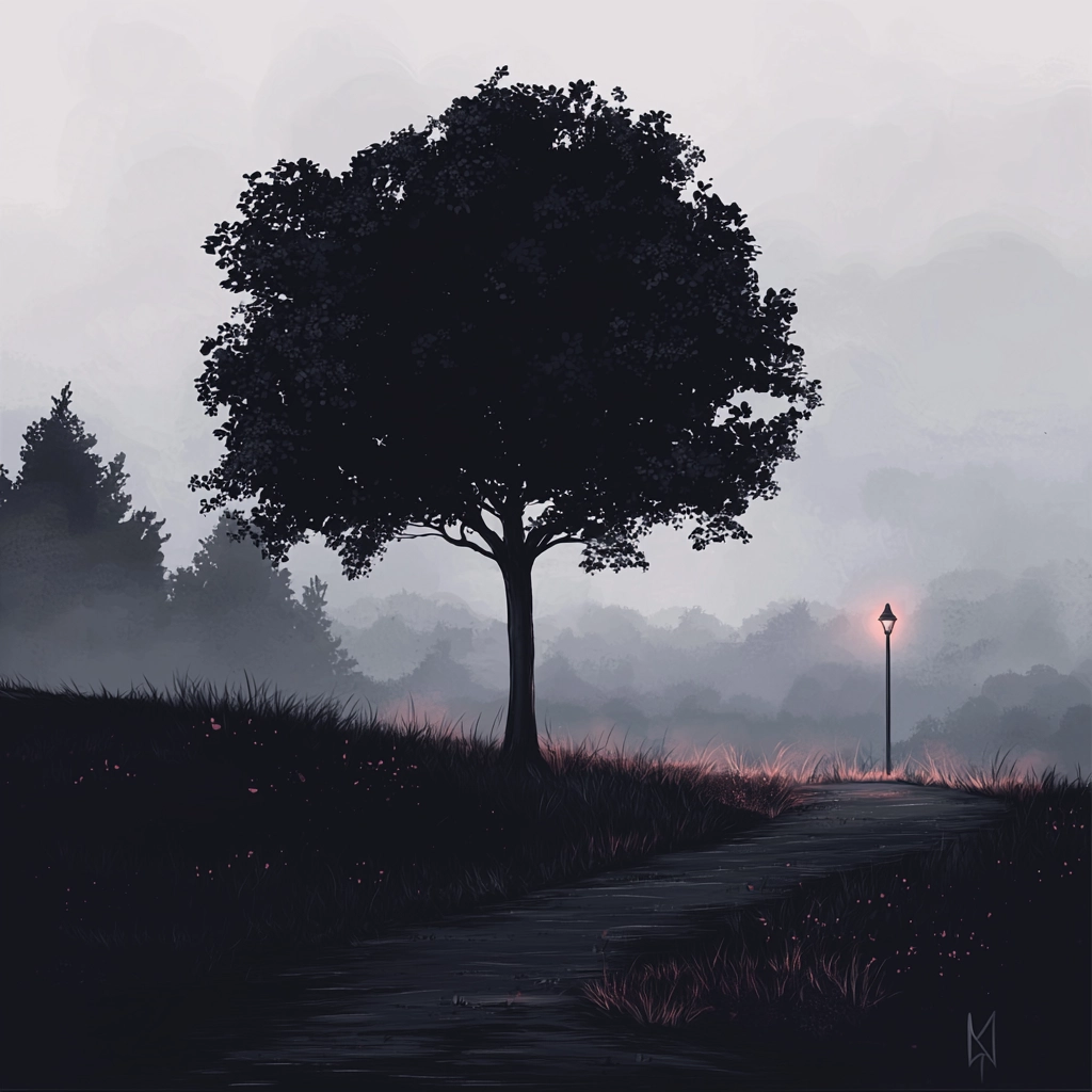 This style uses soft diffused lighting to highlight muted shades of black, white, and gray, lending depth and a sense of calm. Surfaces have a subtle texture, and the space is framed to emphasize tranquility and introspection.