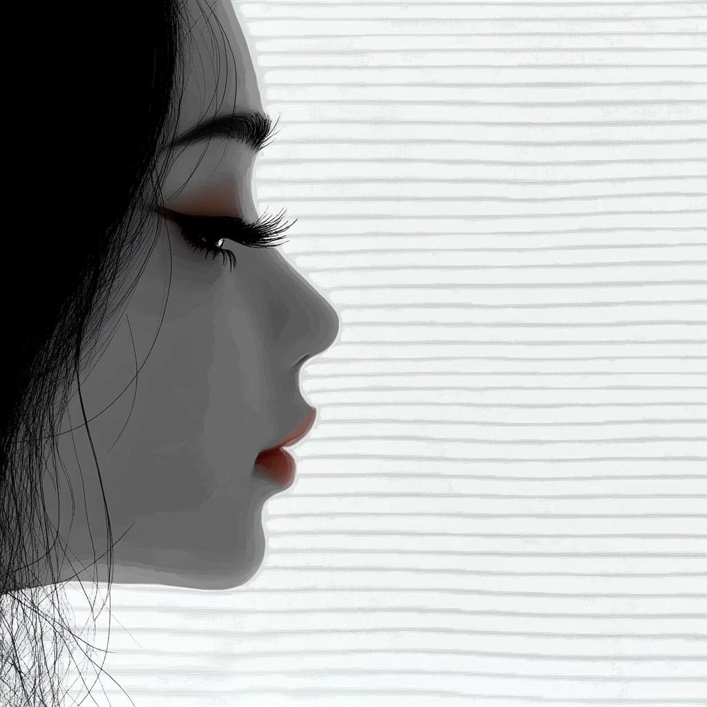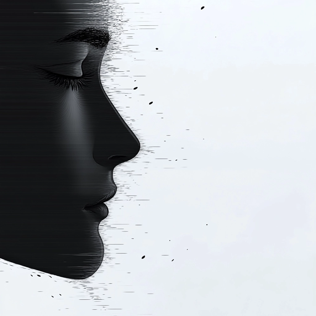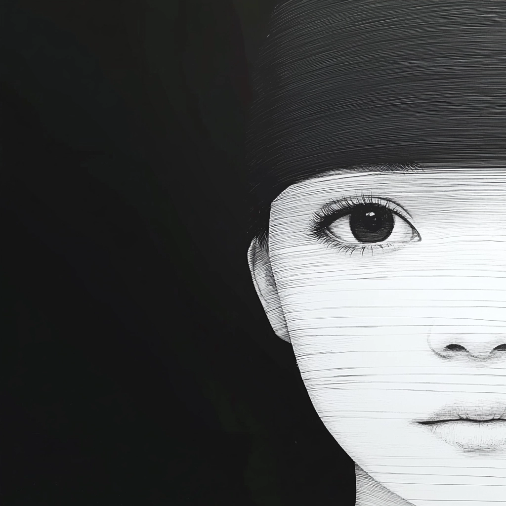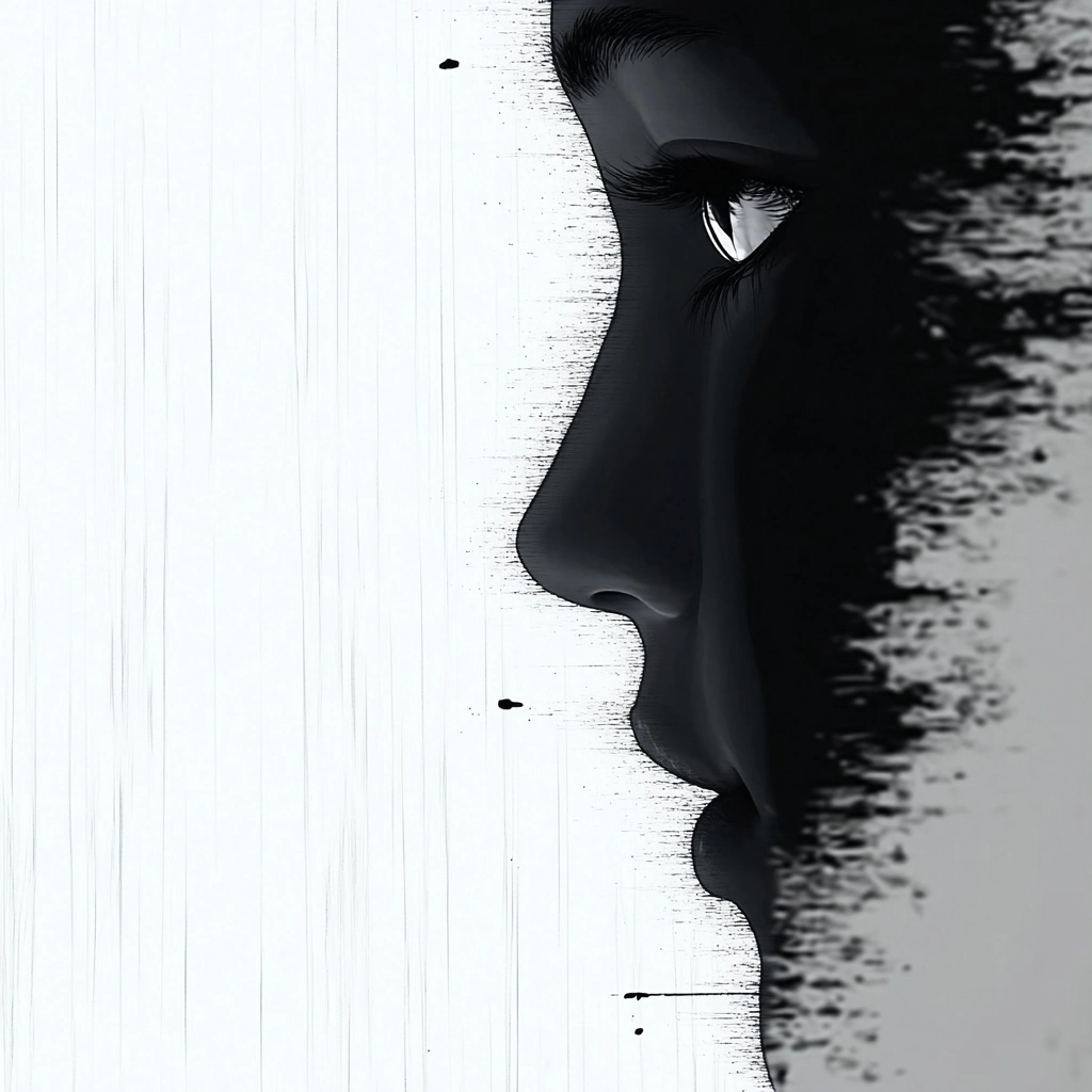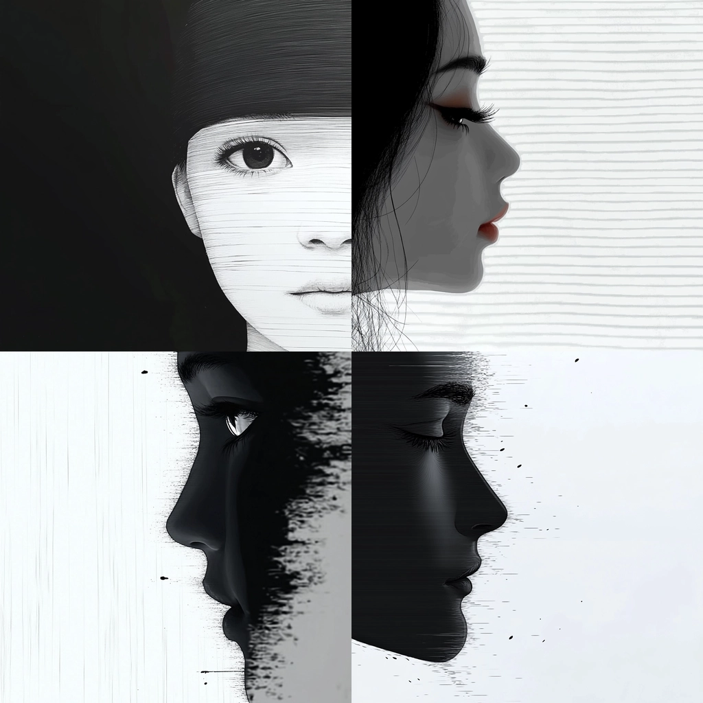 The composition features smooth gradient transitions with strong contrast between black and white regions.