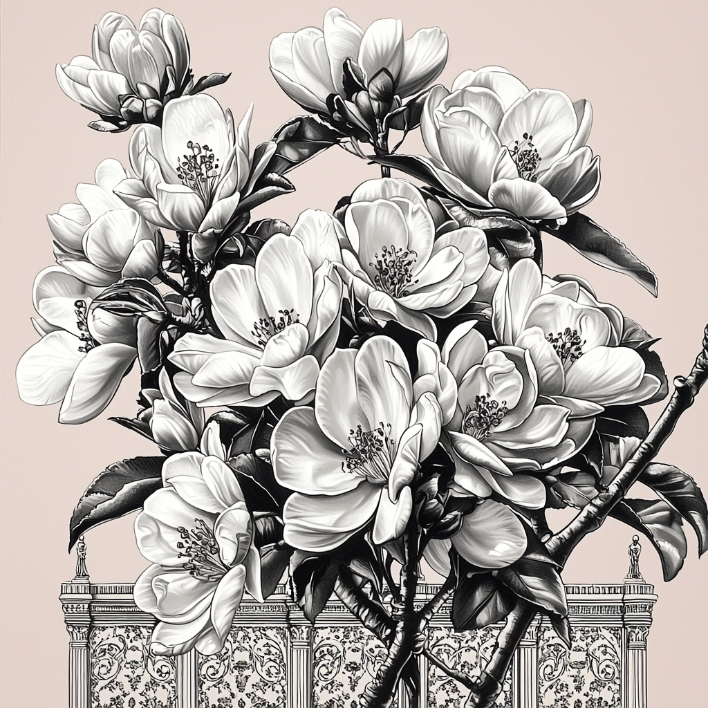 The lighting highlights delicate lines and shading, creating depth and texture with precise contrasts. The spatial arrangement emphasizes detailed close-up views against minimalist backgrounds.