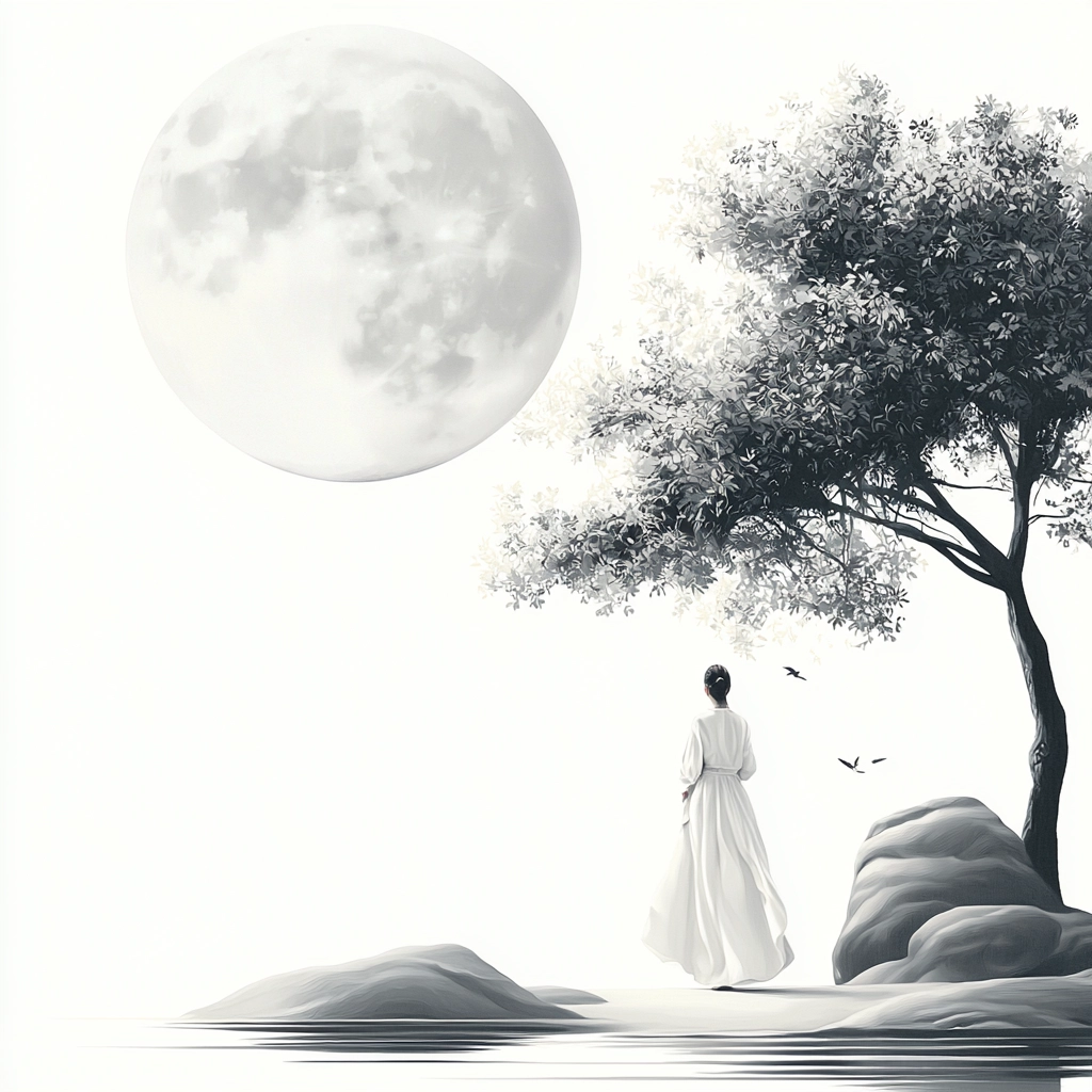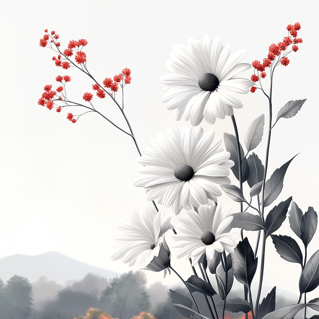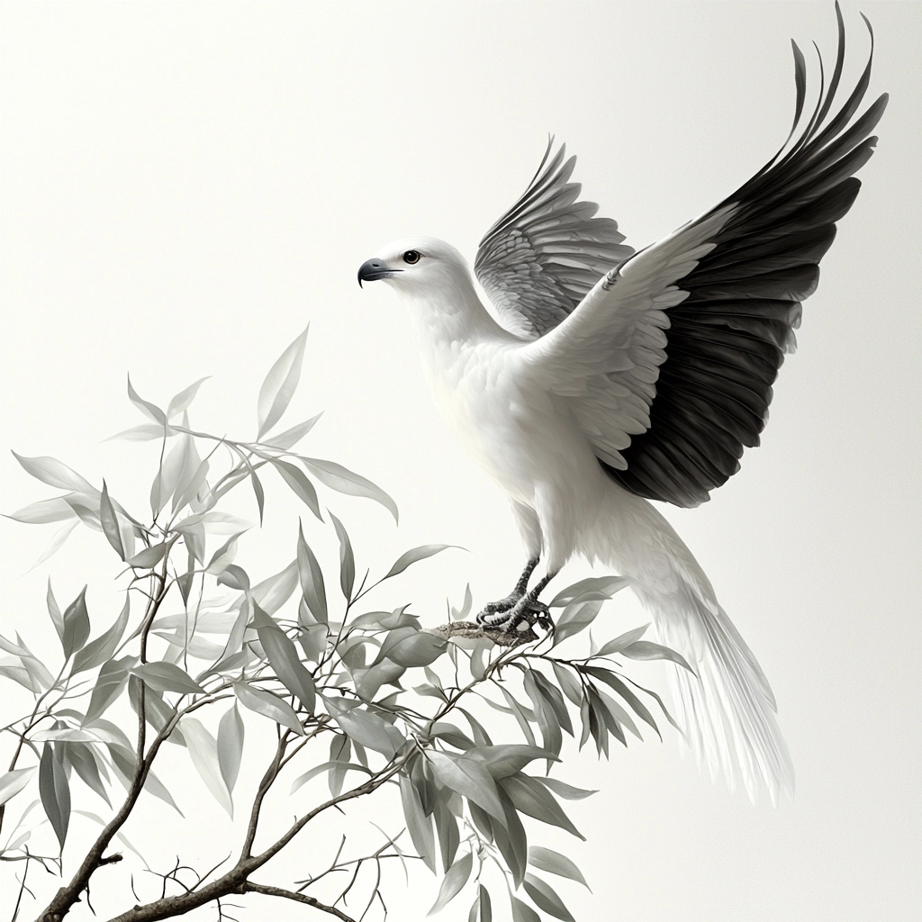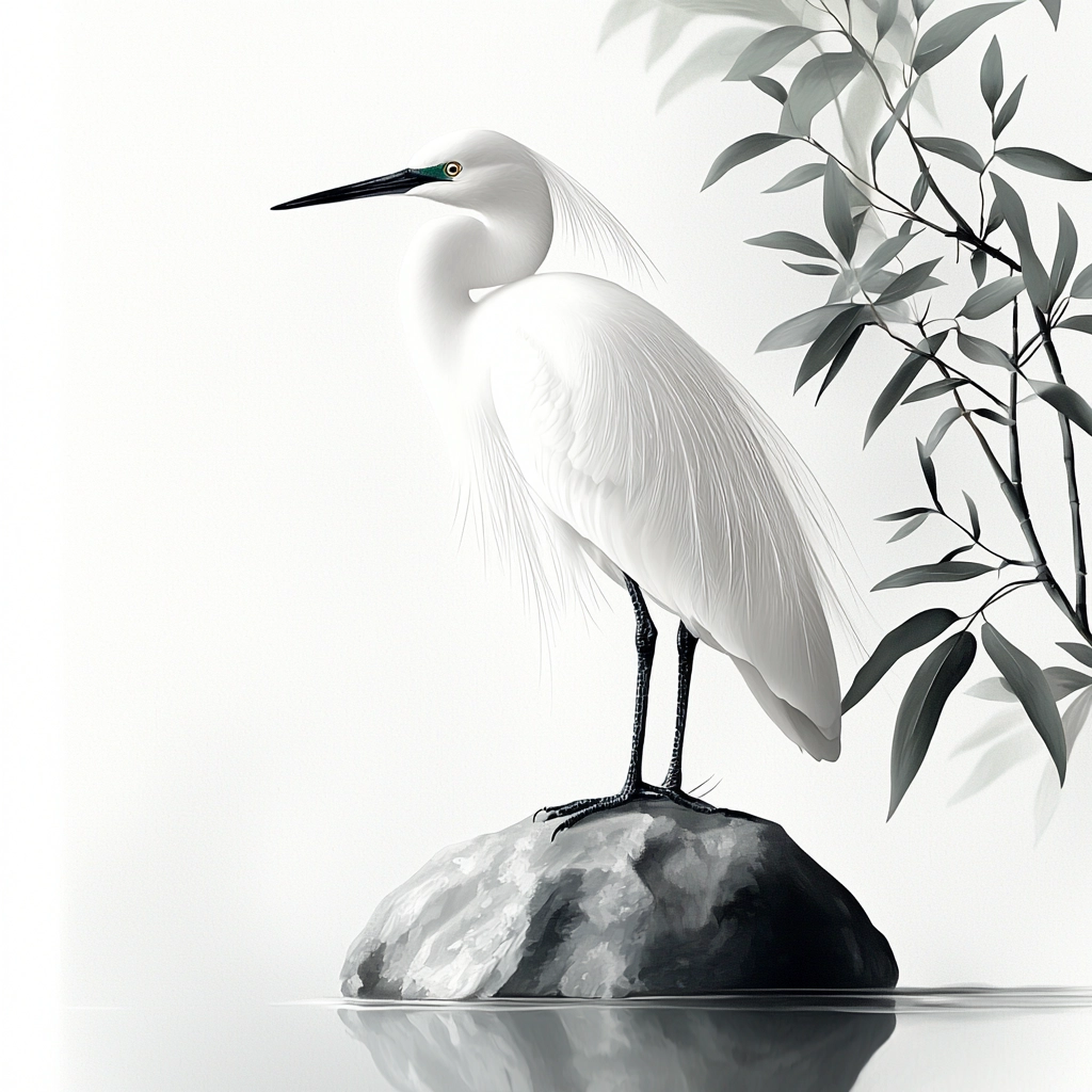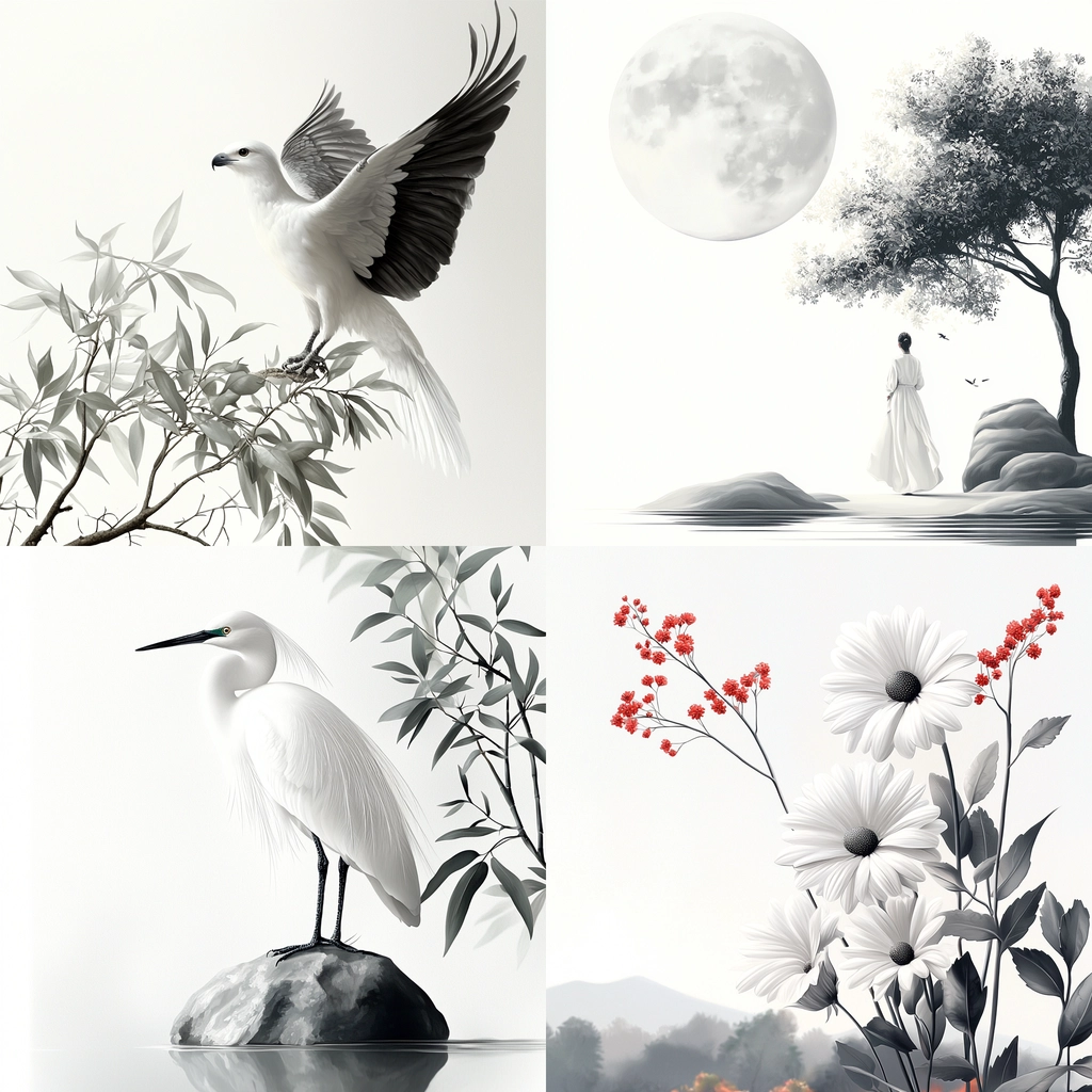 The lighting is soft yet defined, highlighting the elegant interplay between black and white. Fine lines and delicate gradients create depth, while the textures provide a smooth yet detailed appearance, emphasizing fluidity and balance.