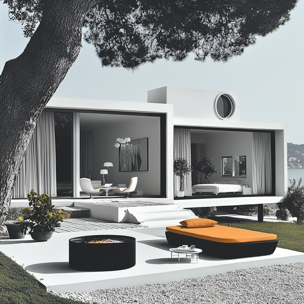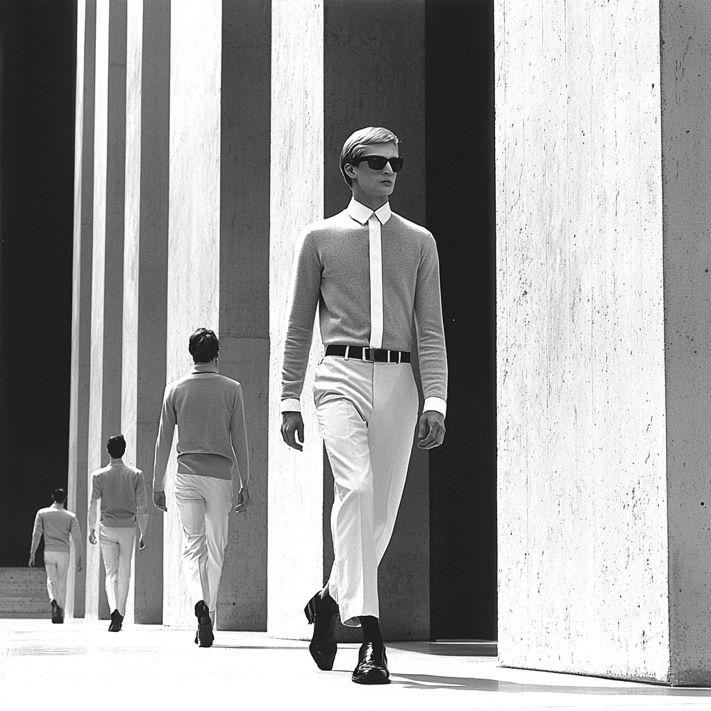 The use of sharp contrasts between light and shadow enhances the clarity and simplicity of the forms, giving a strong spatial sense. Smooth surfaces underscore the minimalistic approach, while the monochrome palette emphasizes the architectural precision and textureless expanses.
