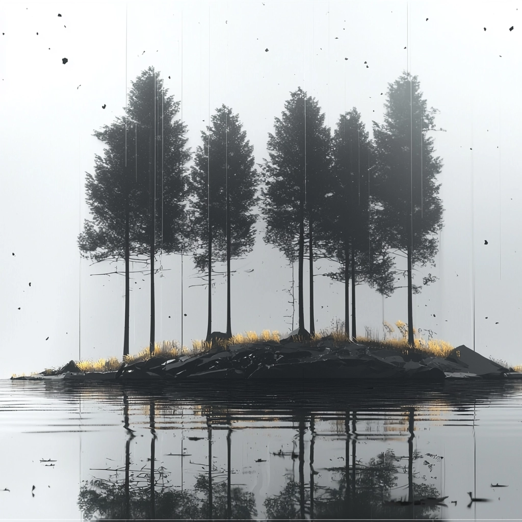 Minimalist compositions using a limited monochrome palette.