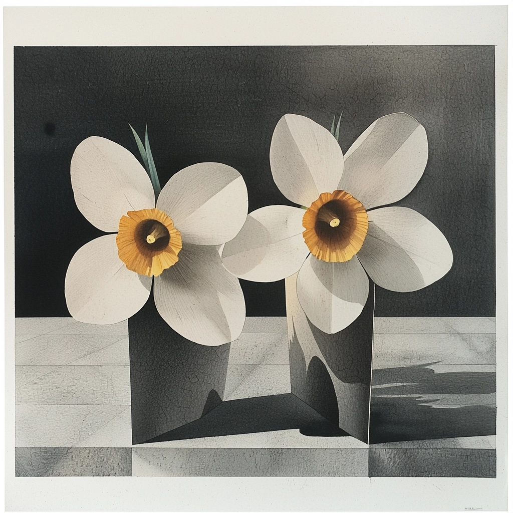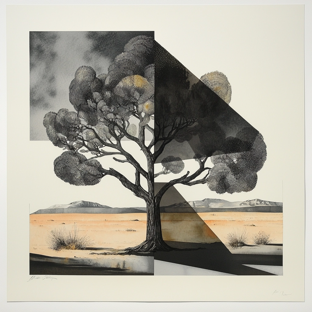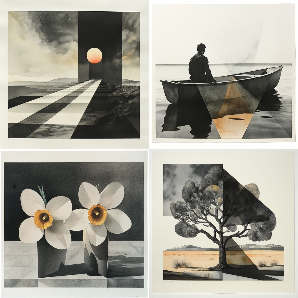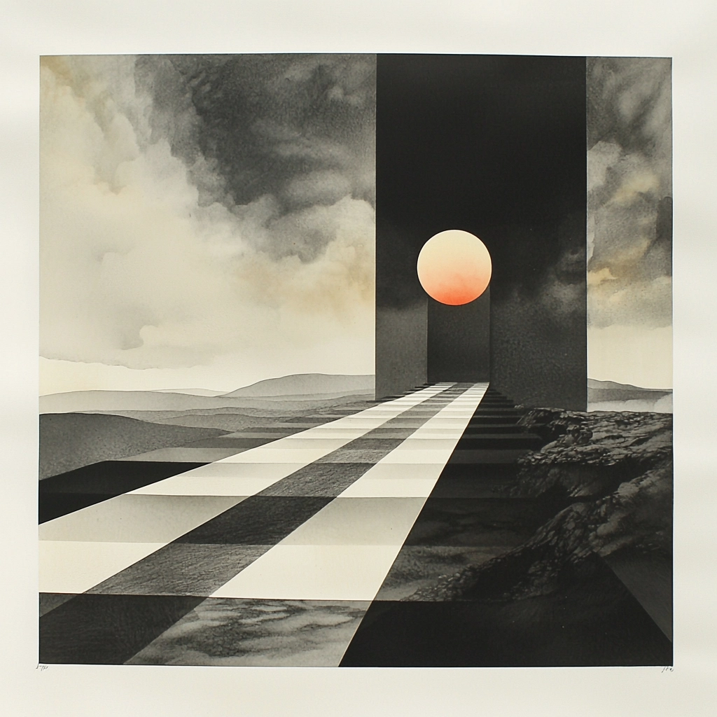 Controlled lighting contrasts enhance spatial depth, while grayscale tones provide texture richness. Sharp geometric lines intersect with realistic elements, creating a compelling visual narrative with precision.