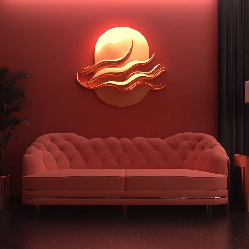 Lighting focuses on high contrast, accentuating smooth surfaces against the matte red backdrop. Shadows and highlights define forms with rich textures and subtle tones. The spatial arrangement gives a sense of layered depth.