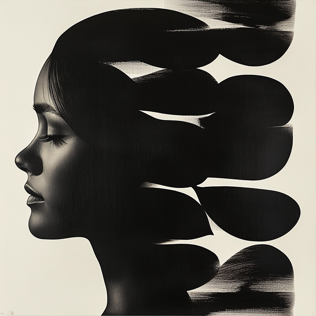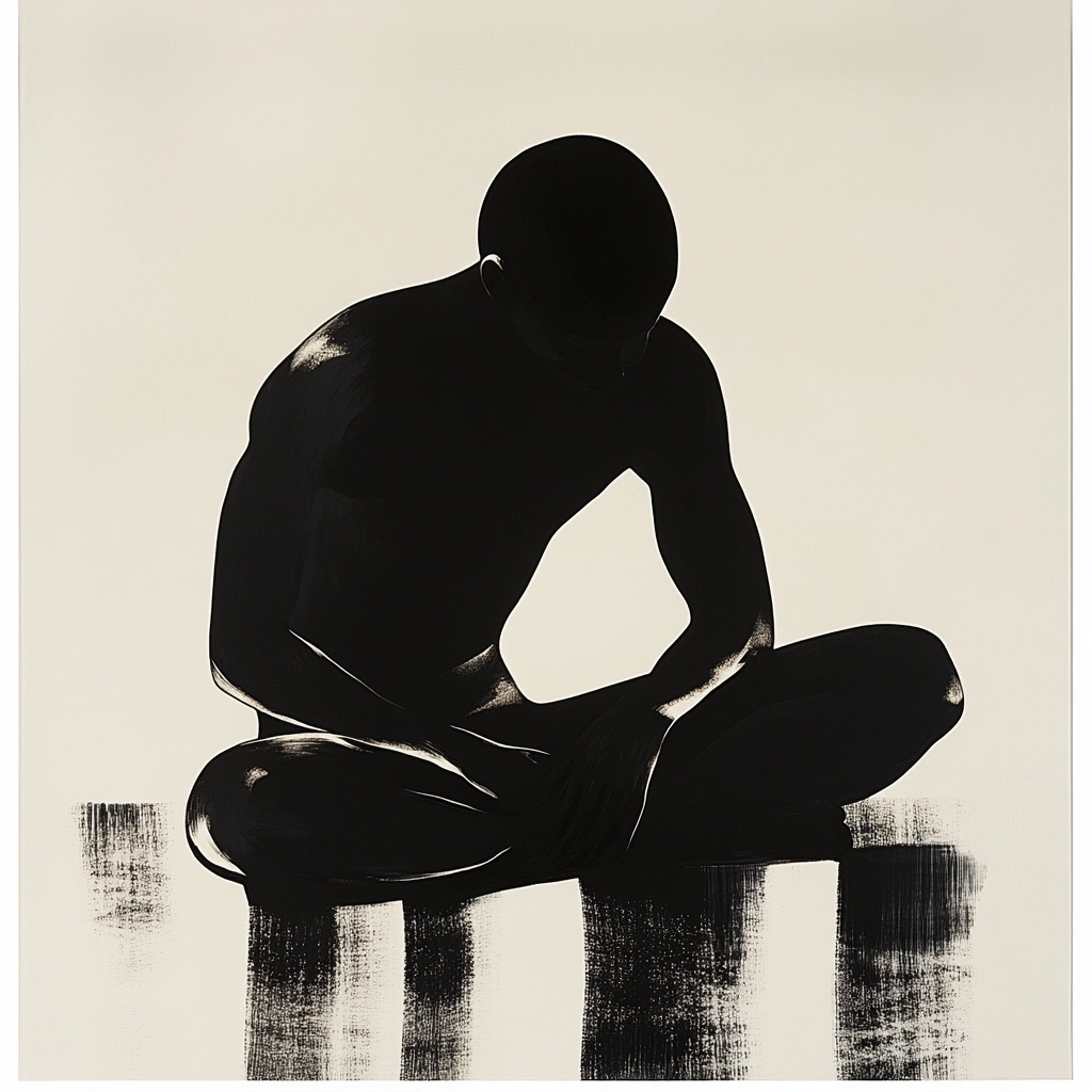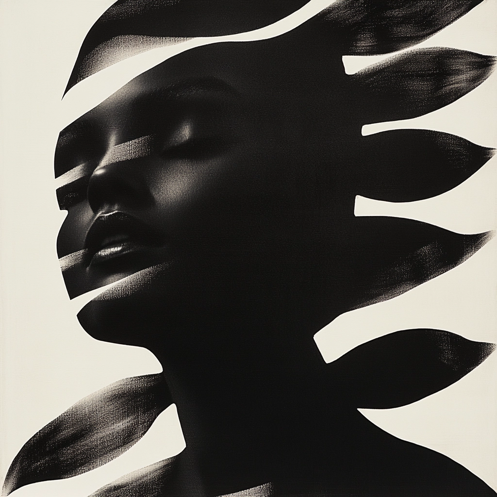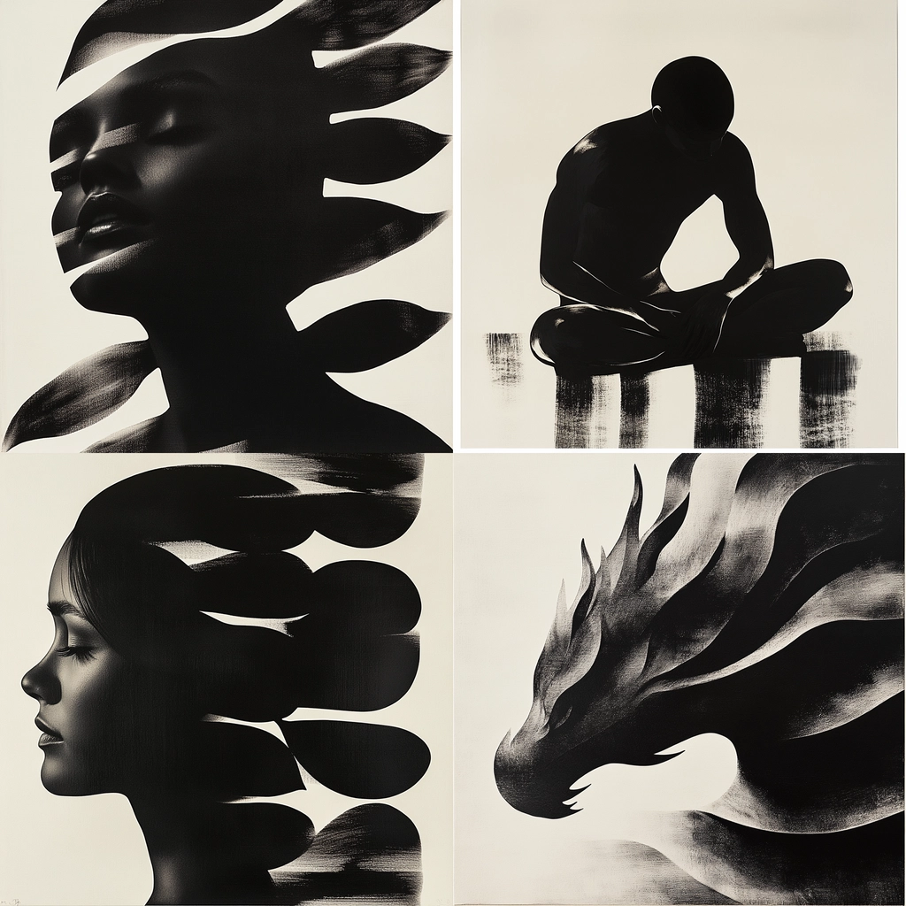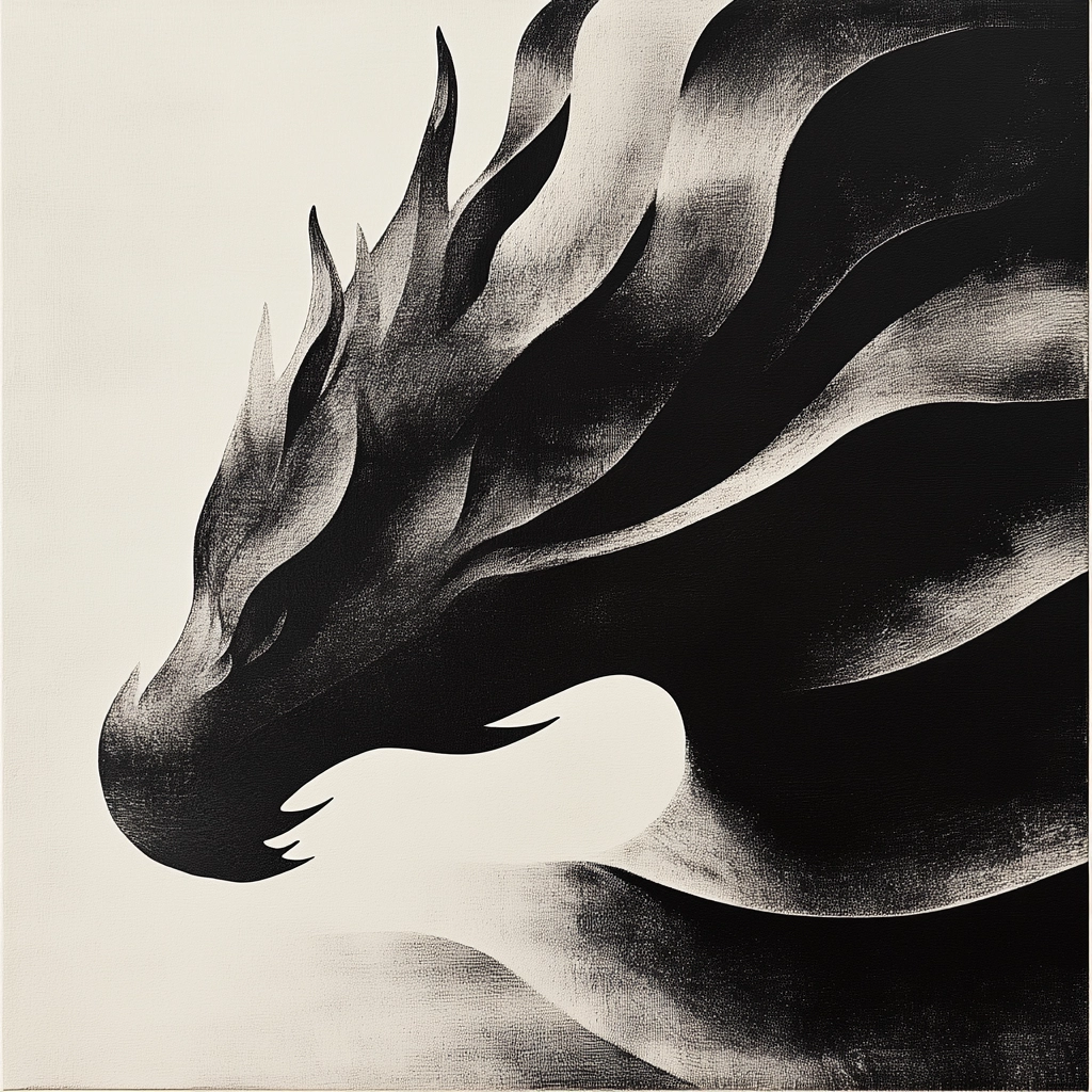 The monochrome composition emphasizes strong silhouettes contrasting against a light background, creating a dramatic visual impact.