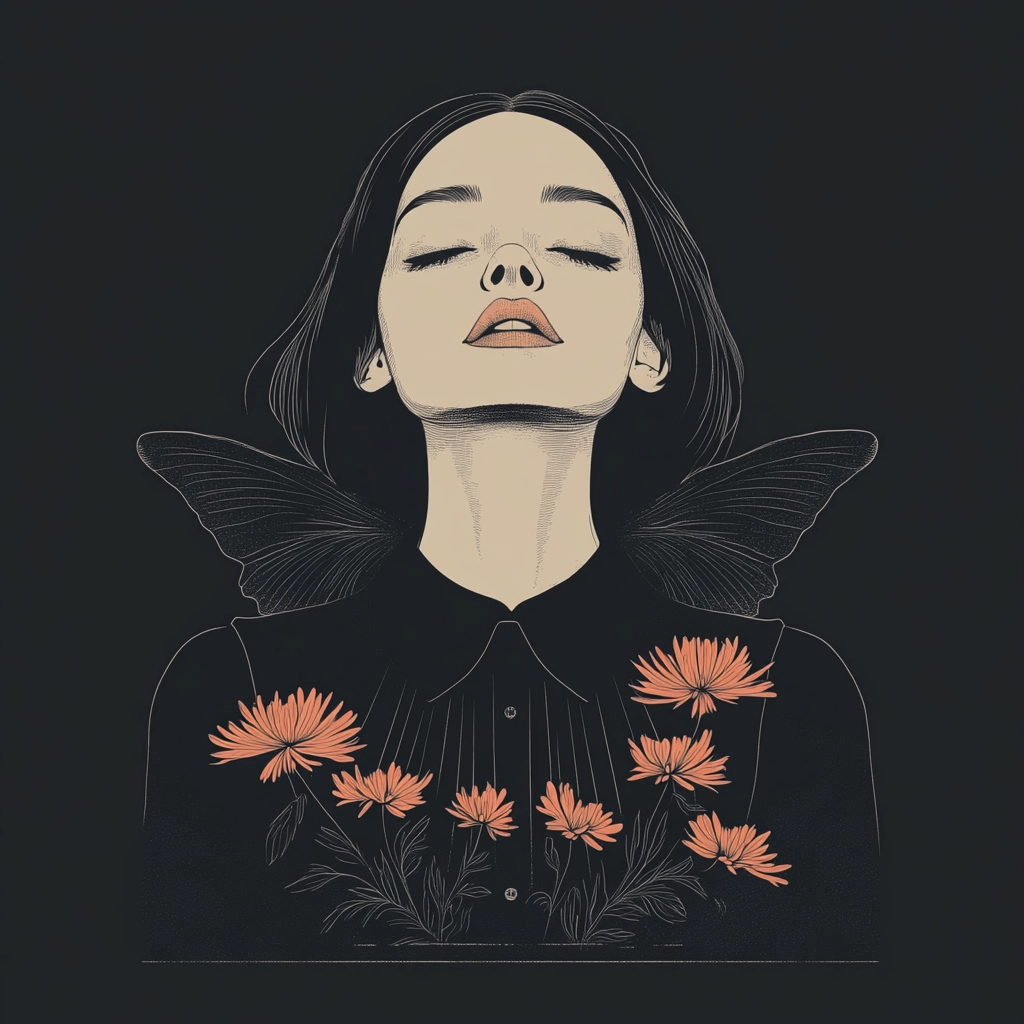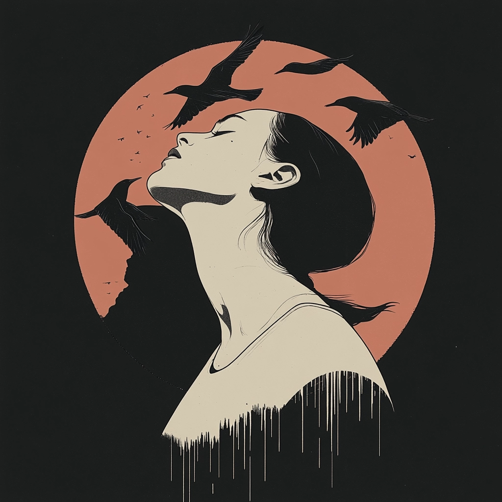 Sharp contrasts define the sleek silhouettes illuminated by monochrome tones accented with orange hues.