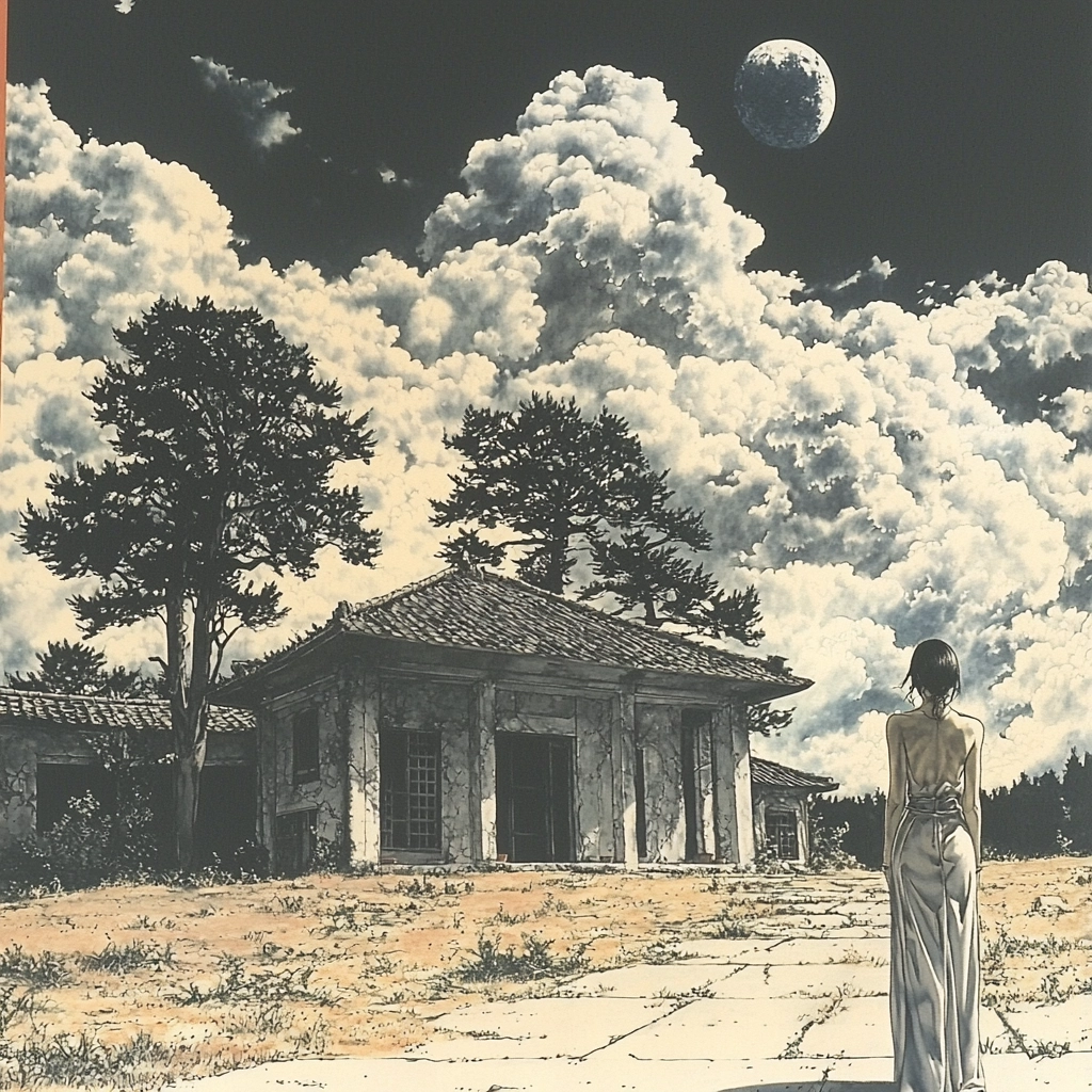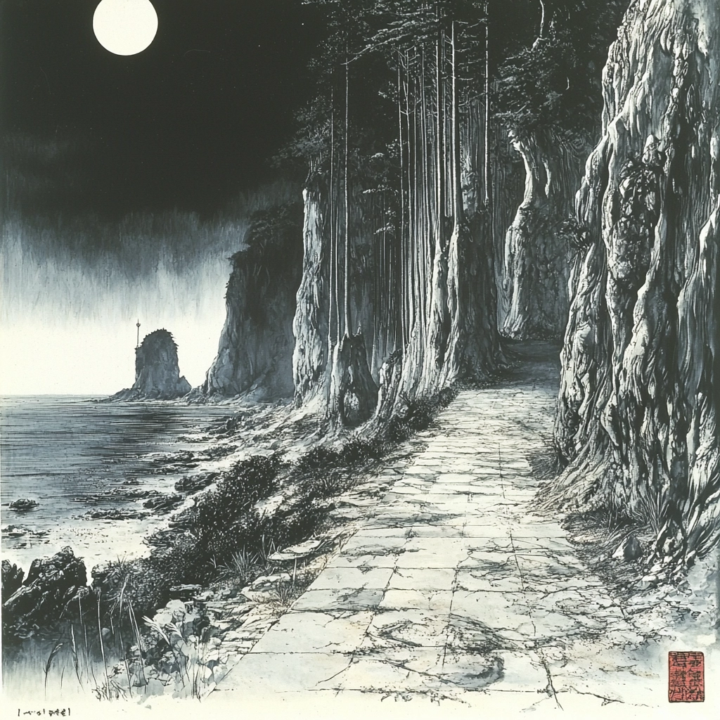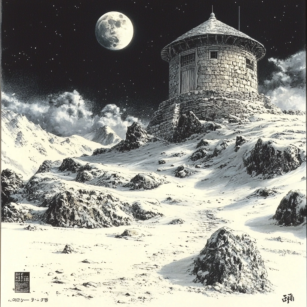 Skilled use of lighting enhances depth, as stark contrasts between black, white, and gray result in a textured landscape that feels vast and immersive. Attention to detail in texture and lighting effects create a realistic yet imaginative spatial perception.