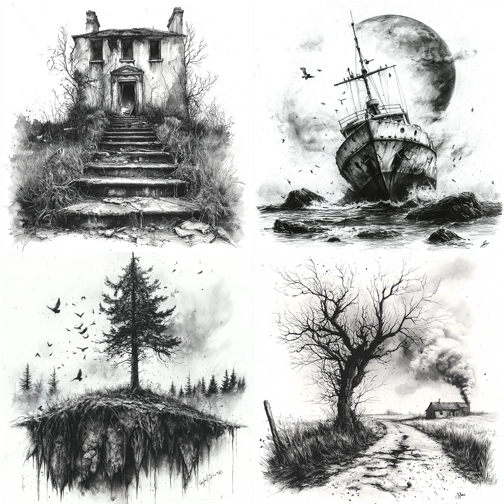 The use of black and white enhances the depth through varied textures, enabling a vivid spatial comprehension. Light and shadow interplay meticulously to accentuate intricate details and enhance realism.