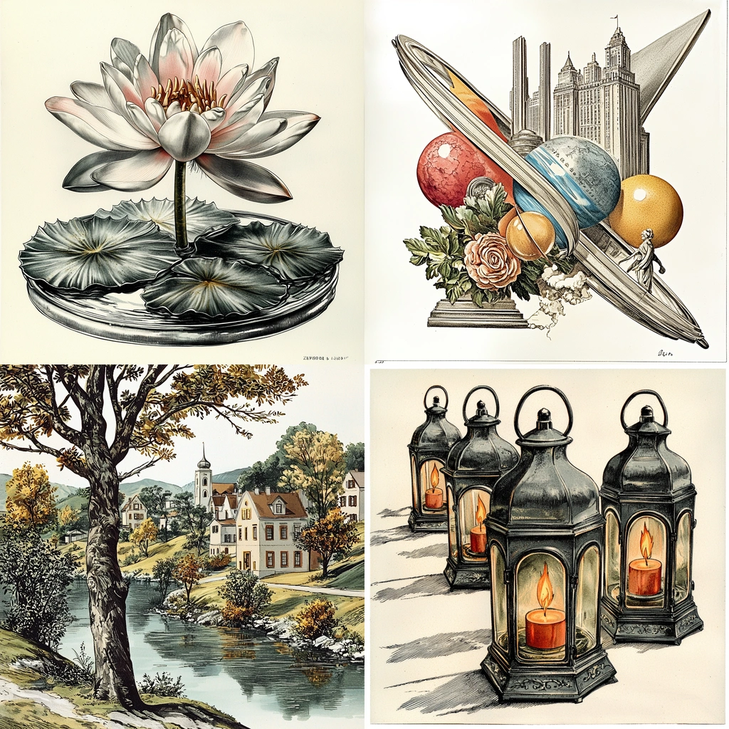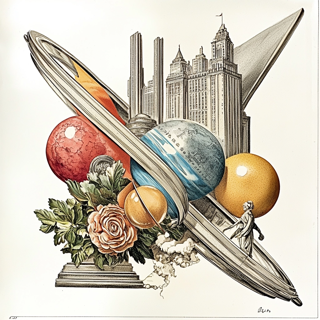 The artwork combines balanced lighting with a skillful use of muted colors to create depth and highlight intricate textures, while maintaining a steady spatial harmony across diverse elements.