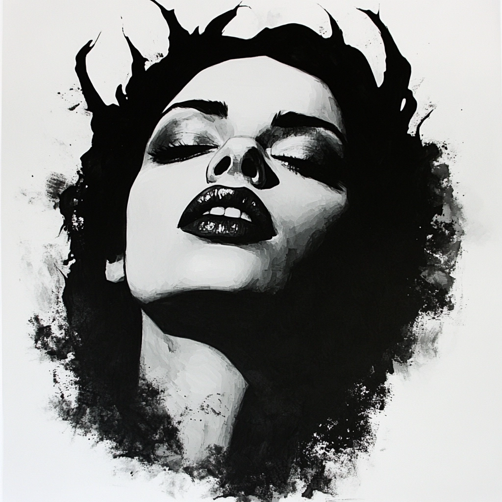 Distinct lighting accentuates form and depth, with sharp contrasts between black and white. The texture is expressed through strong shadowing, creating a pronounced spatial sense. The composition highlights an interplay of light and dark, emphasizing contours and details.