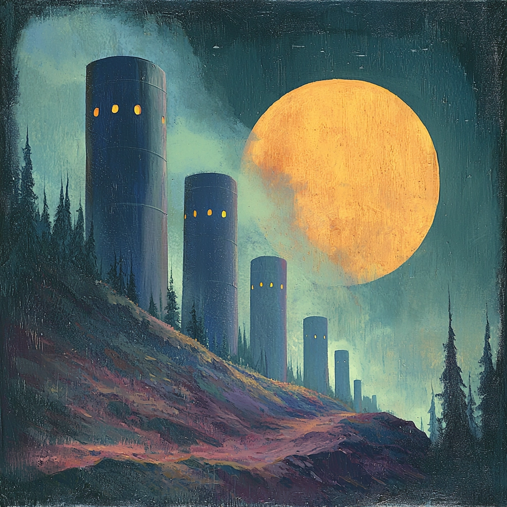 Subdued blue tones contrast with warm glowing accents creating a balanced composition with diverse depth and subtle texture.