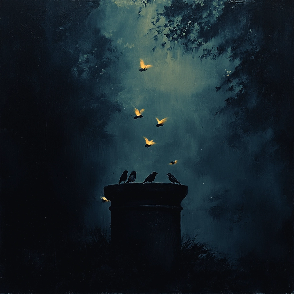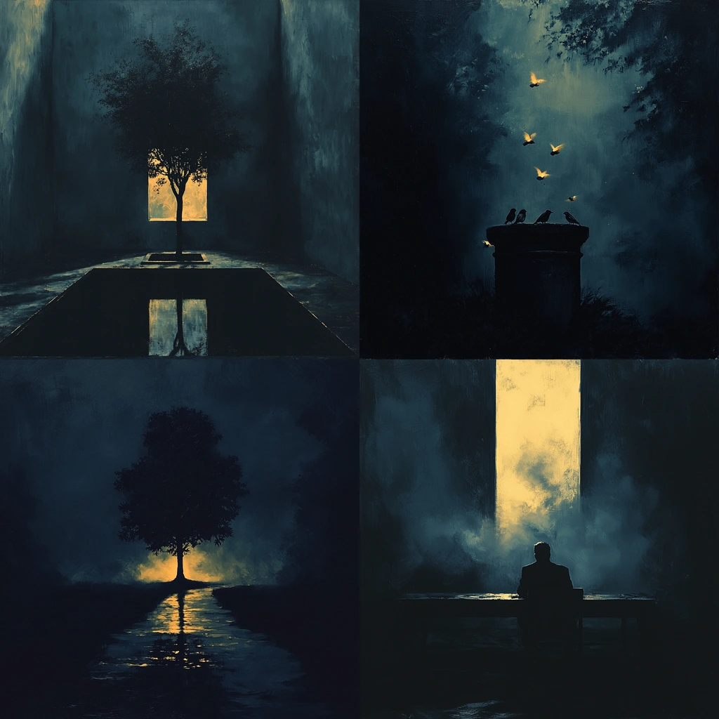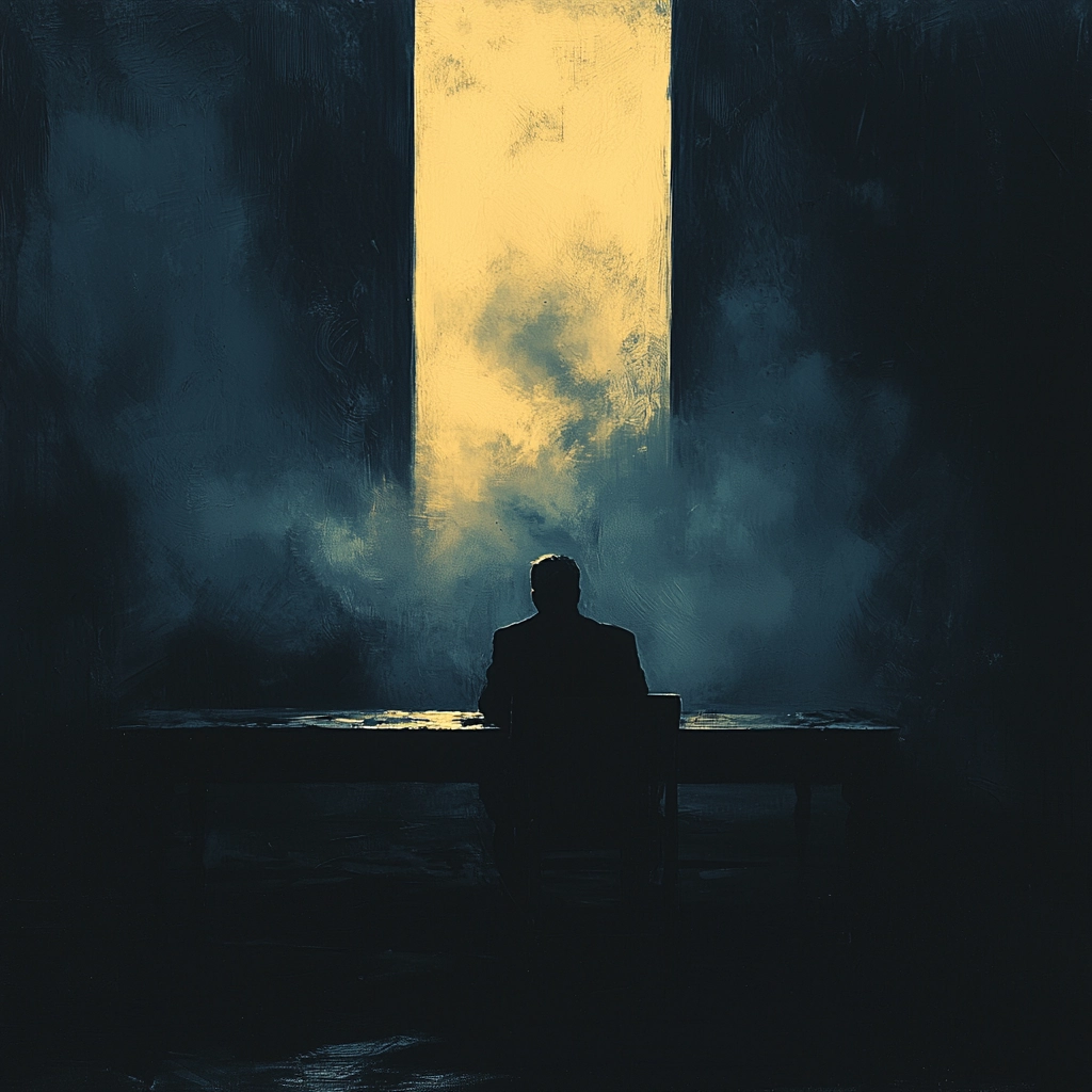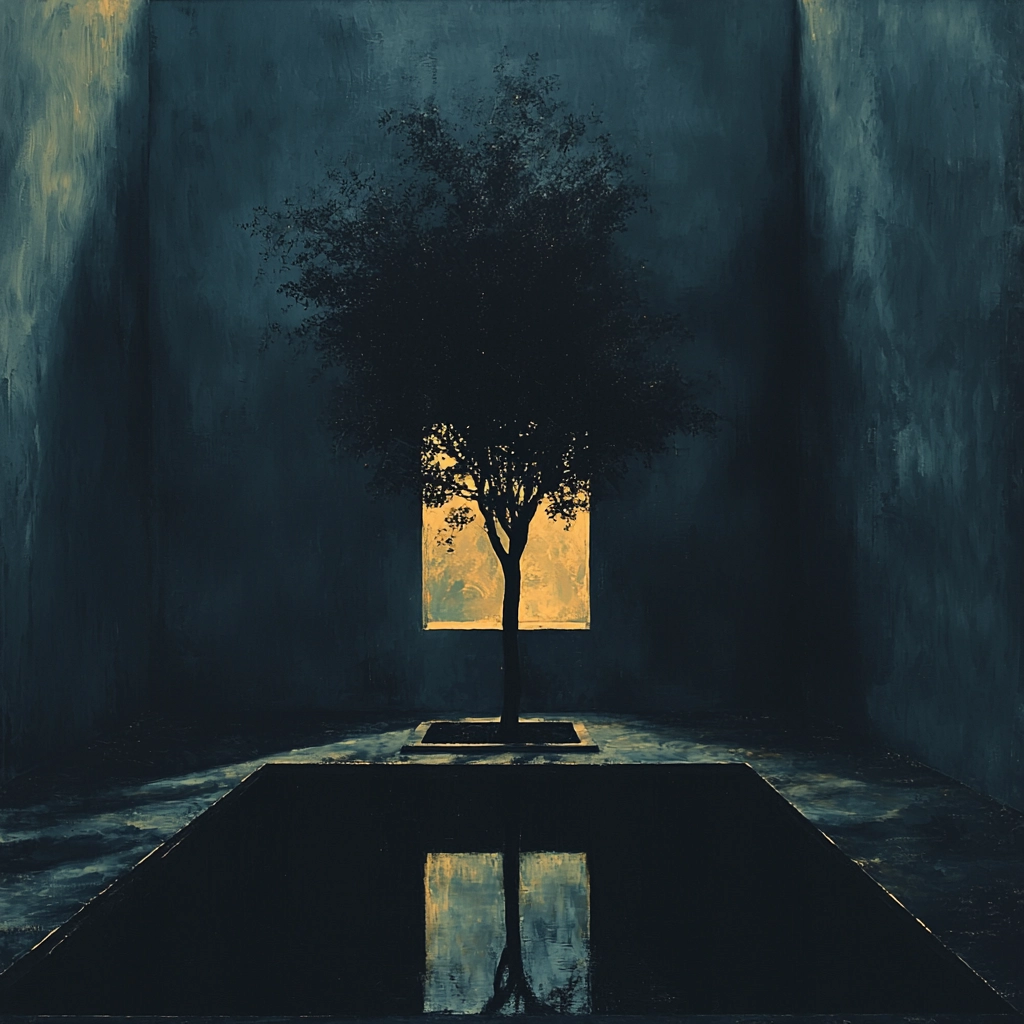 The striking contrast between dark blue shadows and bright yellow highlights creates depth and focus, with subtle texture bringing out the interplay between light and dark, enriching the visual narrative.