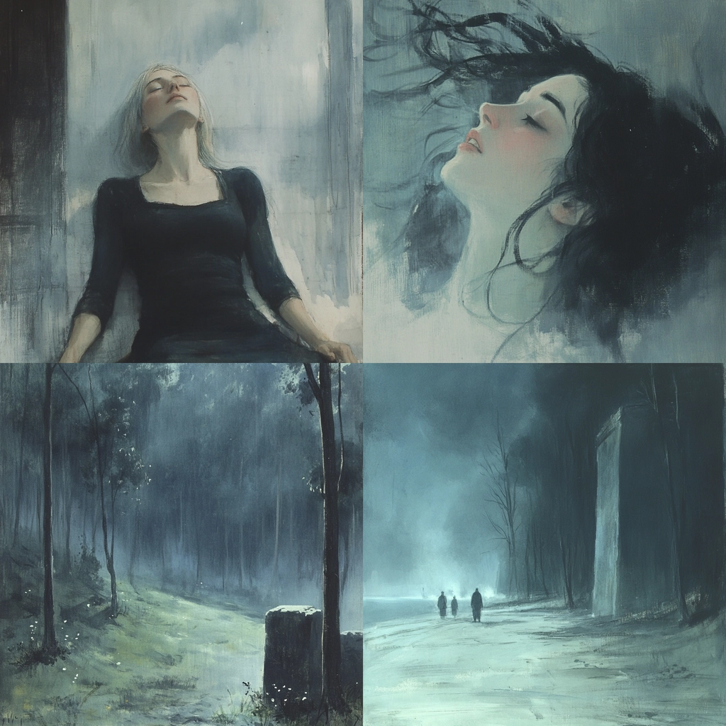 Muted tones with atmospheric lighting create depth.