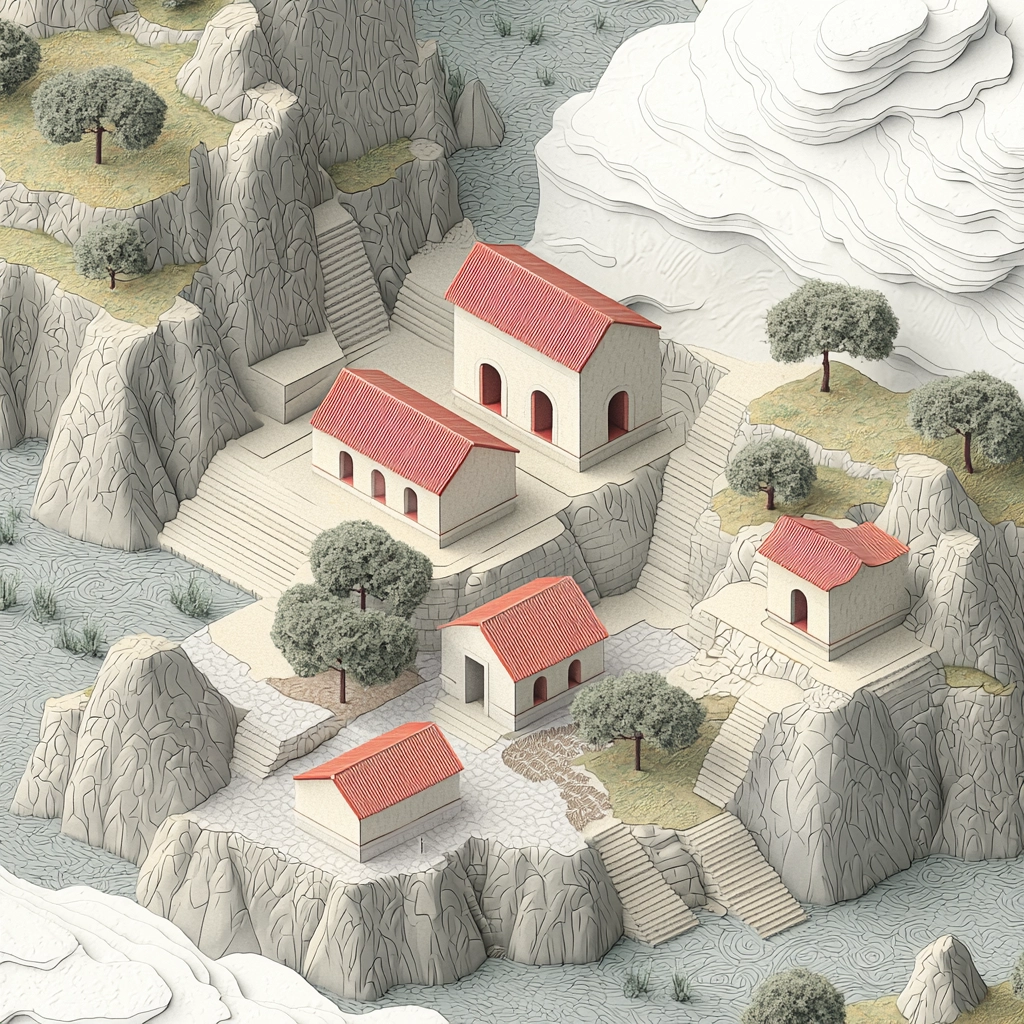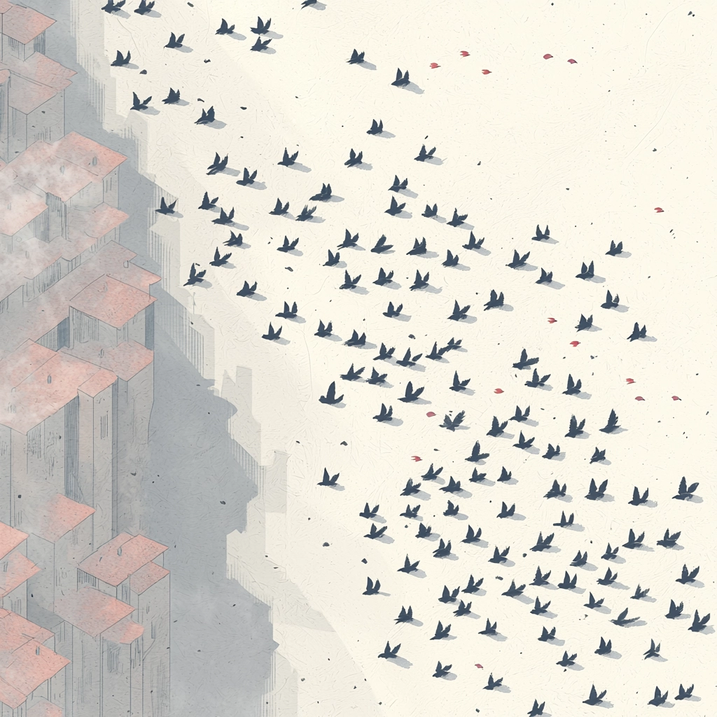 A subtle, delicate interplay of muted tones and architectural structures.