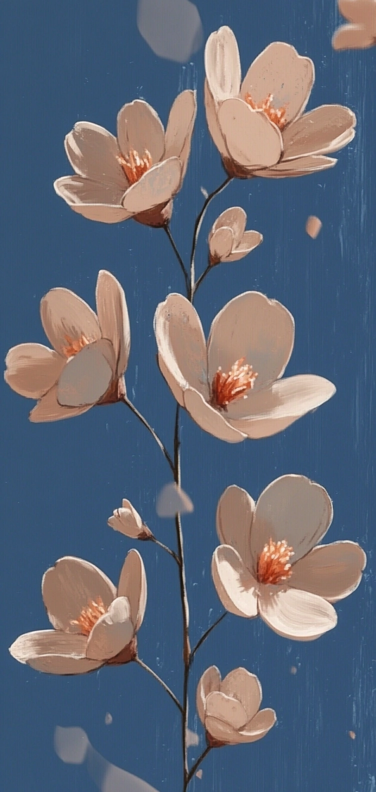 Soft lighting highlights the muted blue and orange hues, creating a balanced harmony. The textured brushstrokes emphasize the tactile quality of the surfaces, while the spatial arrangement conveys depth and distance with subtle transitions.
