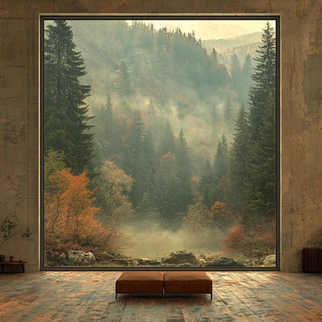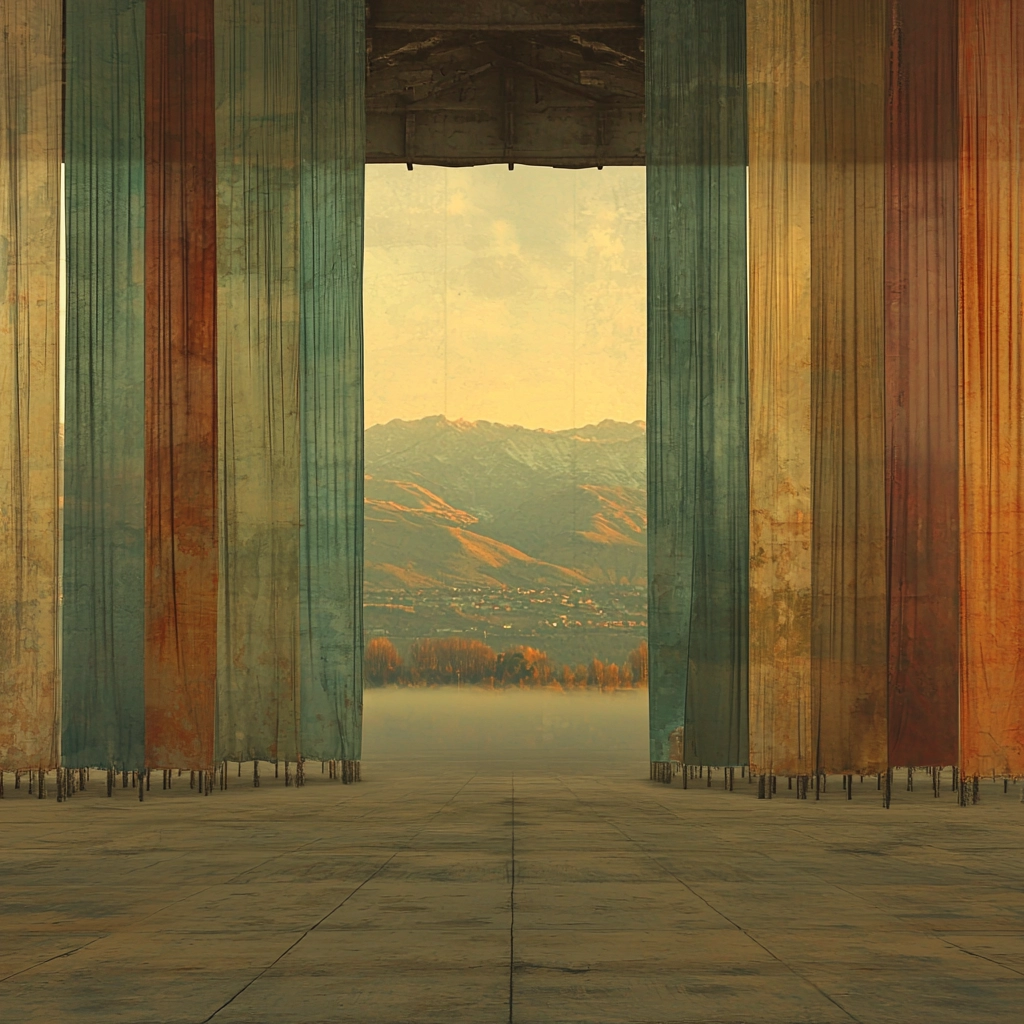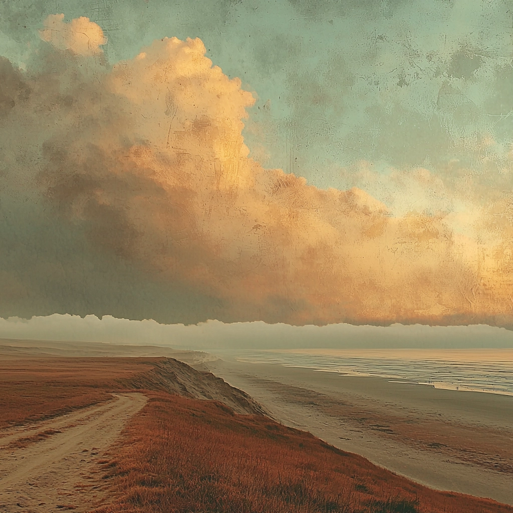 Soft lighting and muted colors offer a gentle yet expansive feel. Gradual transitions create depth, with textures emphasizing the landscape's intricate features and layers.