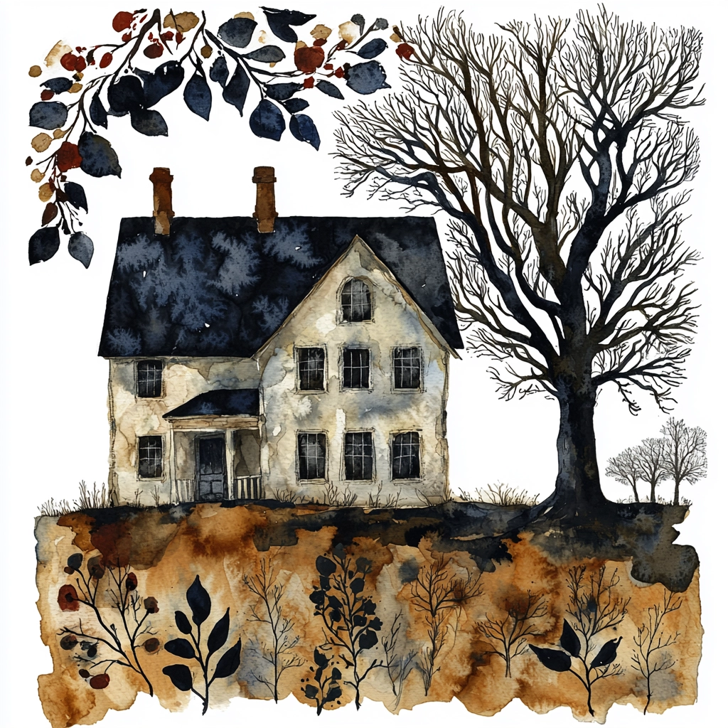 The art features cool dark tones with warm earthy elements, creating a harmonious yet distinct contrast.