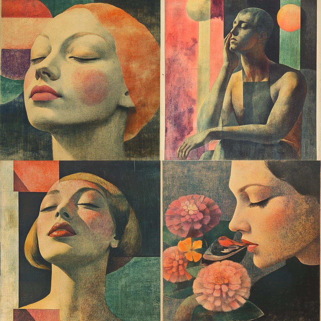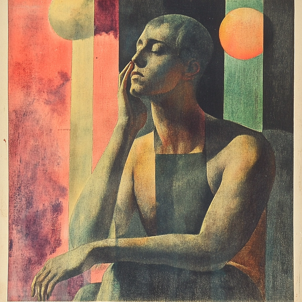 The artwork combines muted, earthy colors with distinct geometric forms, creating a smooth transition across textured surfaces. Balanced lighting highlights the composition, while a subtle play of shadows adds depth and dimension.