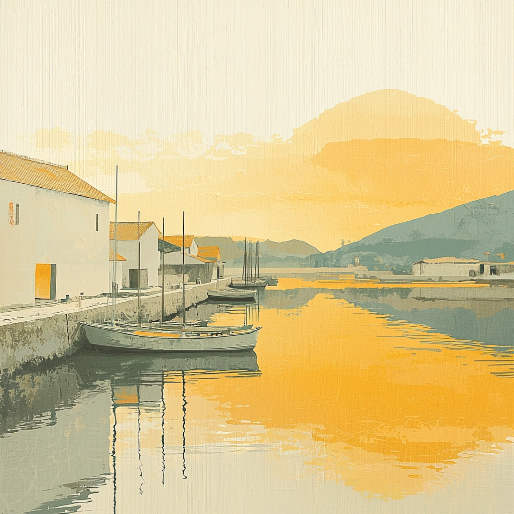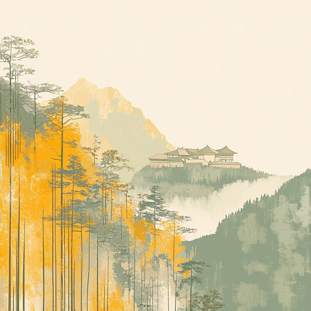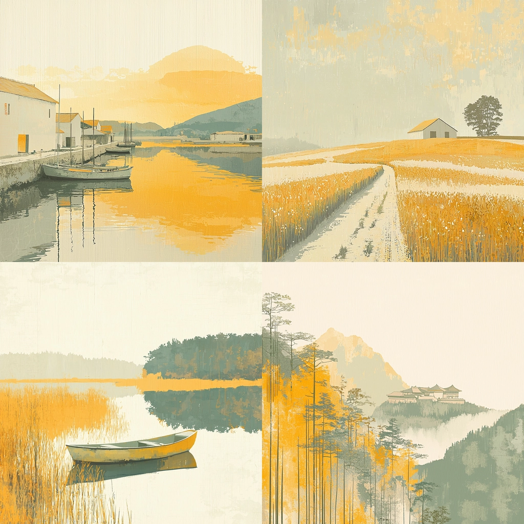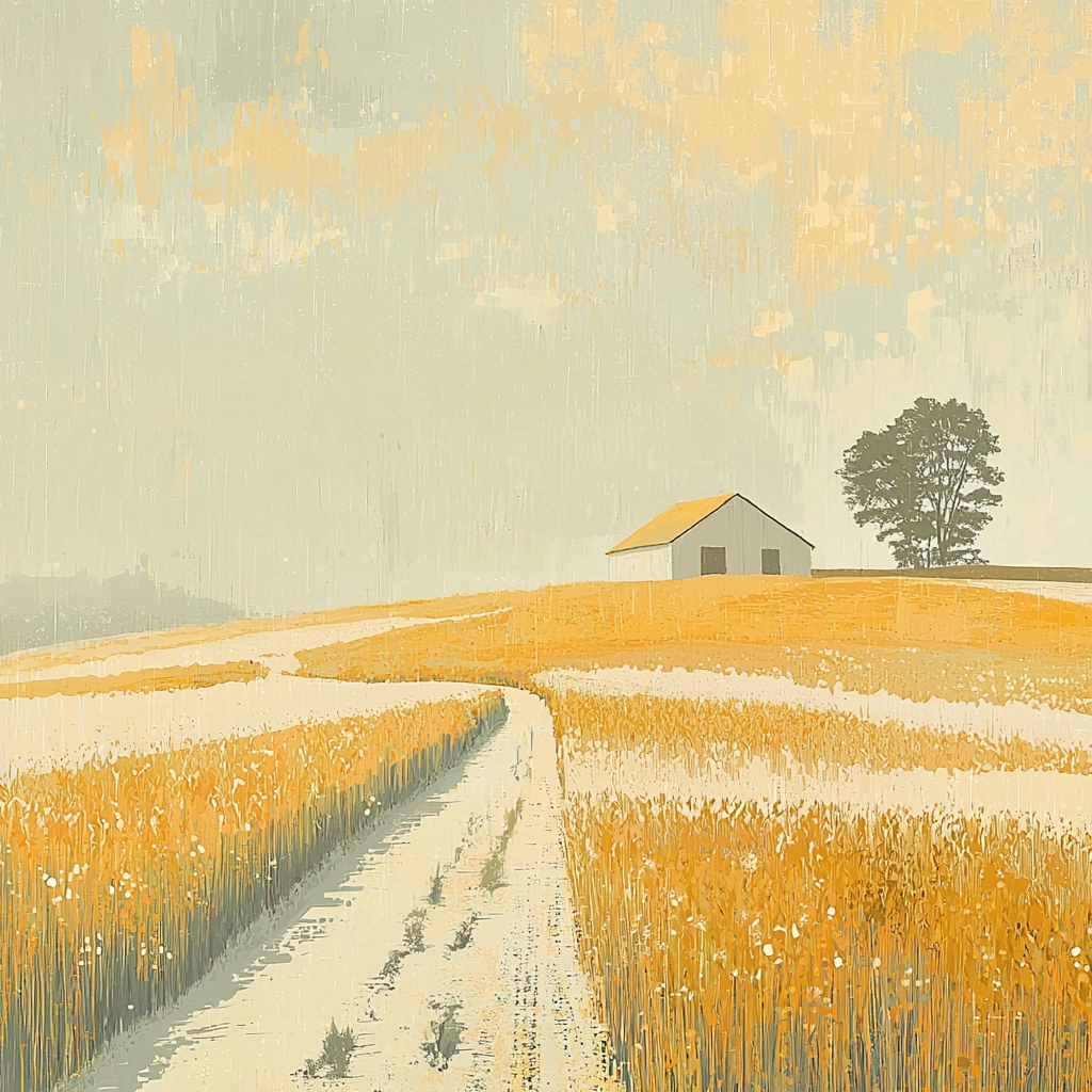The lighting is diffused, creating a smooth transition of colors with a cohesive palette. The textures are minimally detailed, focusing on broad strokes and gentle tonal shifts to evoke a sense of expansive depth and harmony without sharp boundaries.