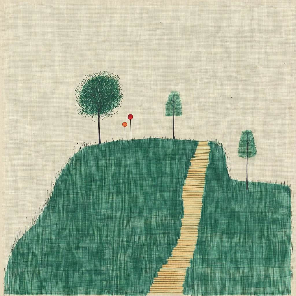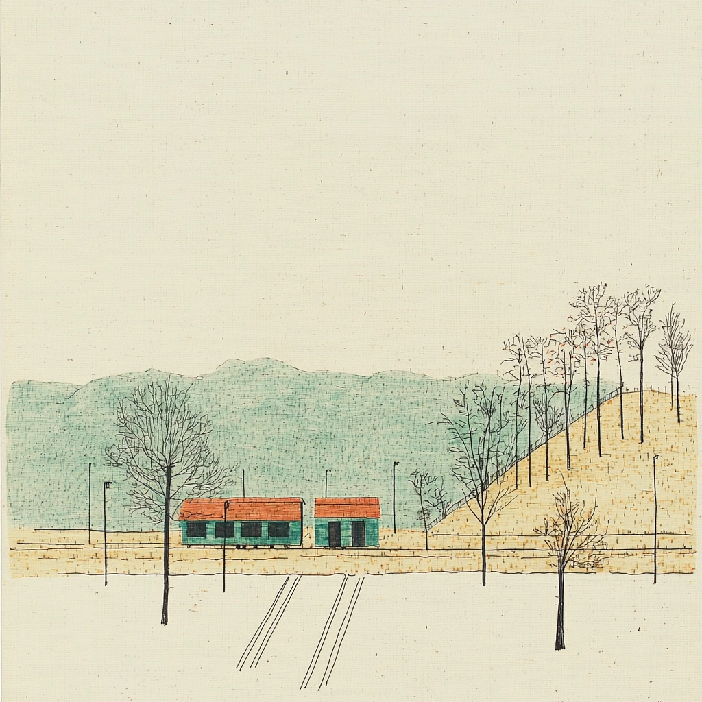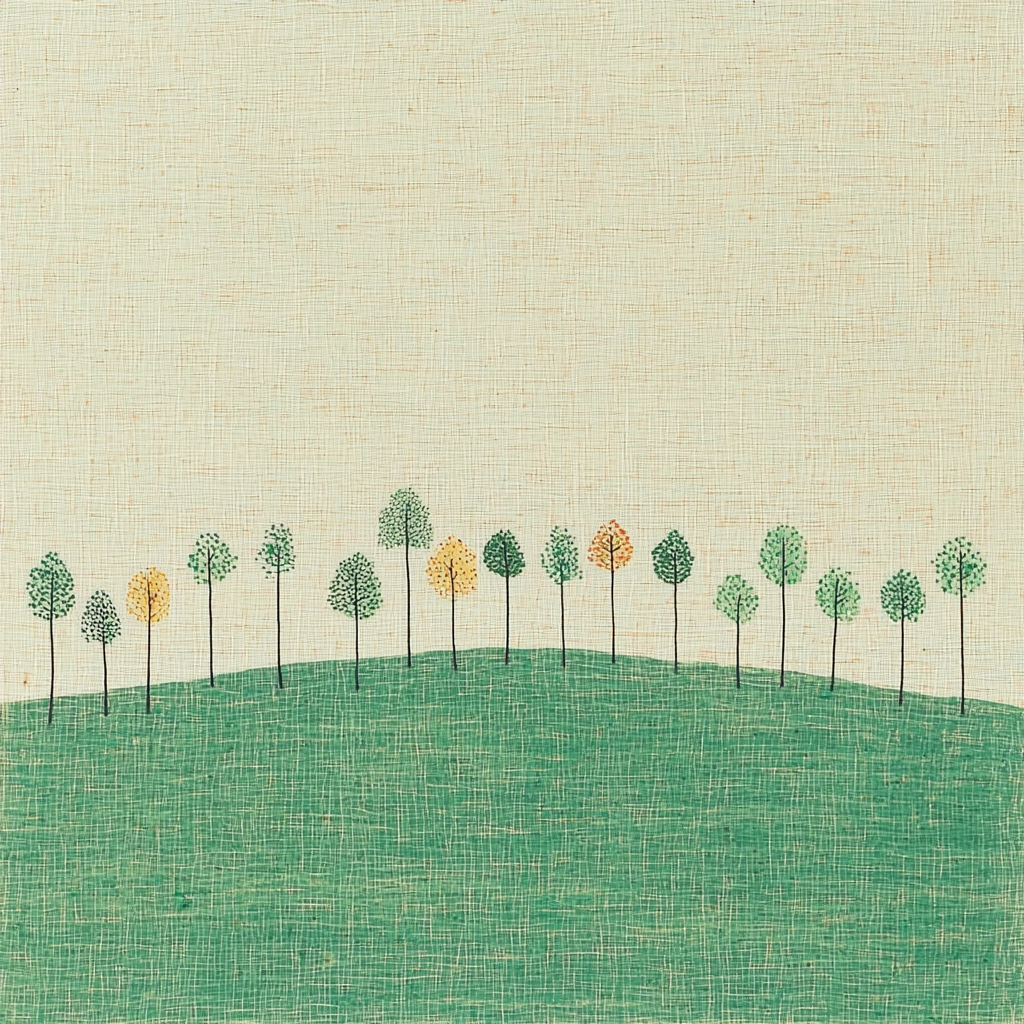 Soft lighting highlights a balanced yet sparse arrangement, with smooth lines forming simple shapes. The colors are muted and earthy, creating gentle contrasts against a textured beige backdrop, offering a coherent spatial sense.