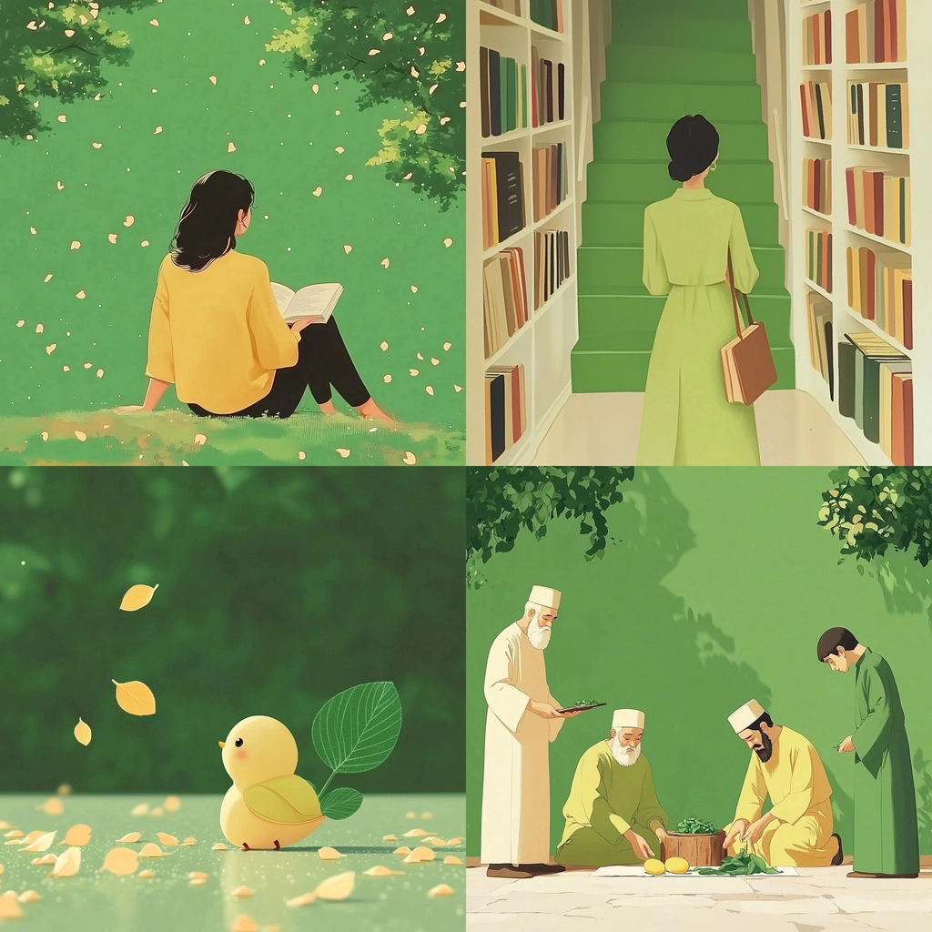 Lighting is soft, highlighting warm, gentle hues. Colors are muted, producing a uniform and tranquil atmosphere. Spatial arrangement feels open yet intimate, with smooth textures contributing to the feeling of calm.