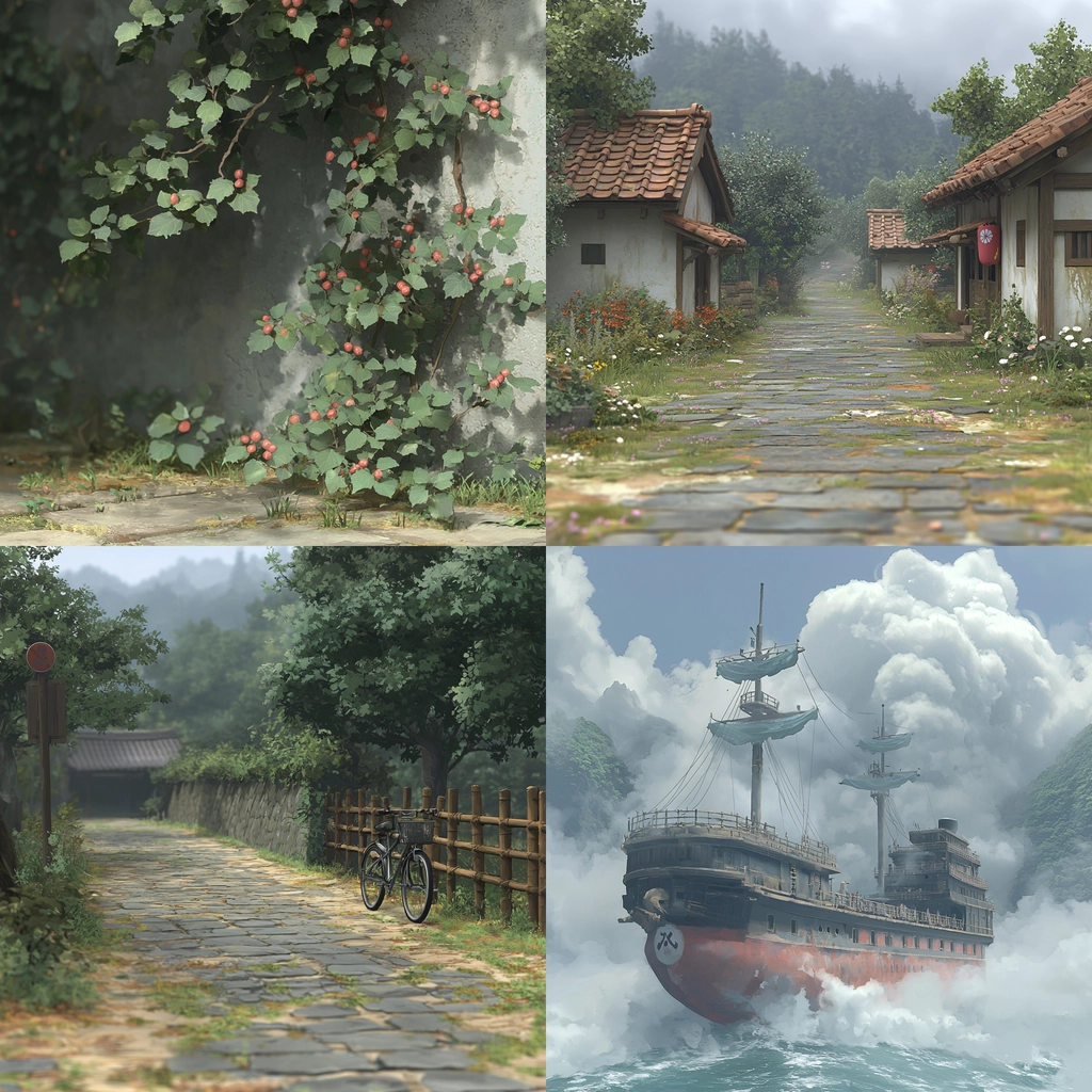 Soft, diffused lighting, enhances subtle textural details and creates a gentle interplay between natural shadows and highlights. The muted color palette accentuates the serene spatial arrangement, giving depth and definition to each element with realistic precision.