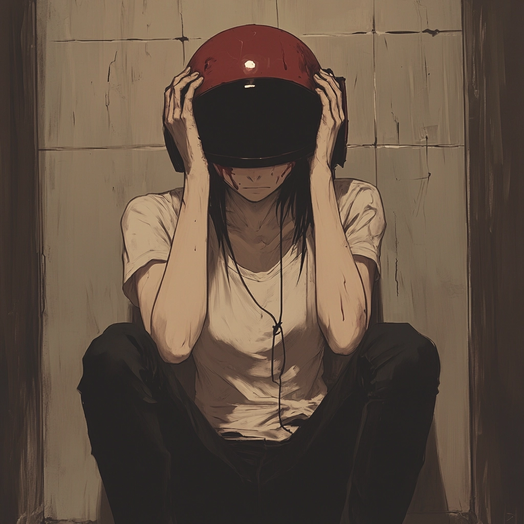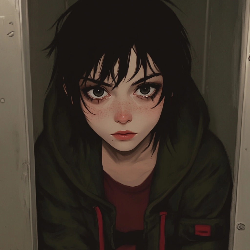 Utilizes a muted color palette with strong, defined lines that creates a sense of contained space. There is an emphasis on vertical and horizontal elements, providing a structured visual arrangement.