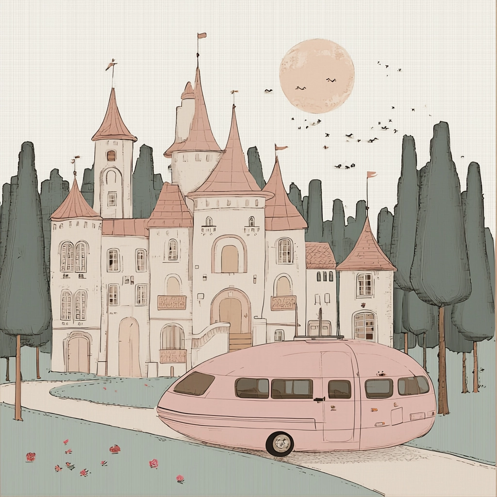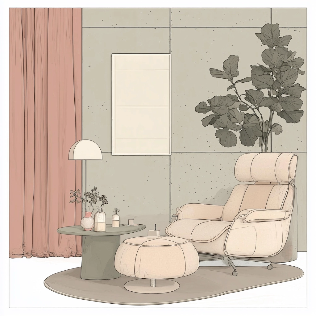 Muted lighting softens transitions between elements, where pastel hues create tonal harmony. The sense of space is flat yet carefully organized, with smooth textures evoking a polished, delicate surface.