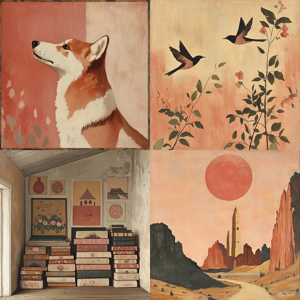 Soft, desaturated tones with balanced compositions and natural textures.
