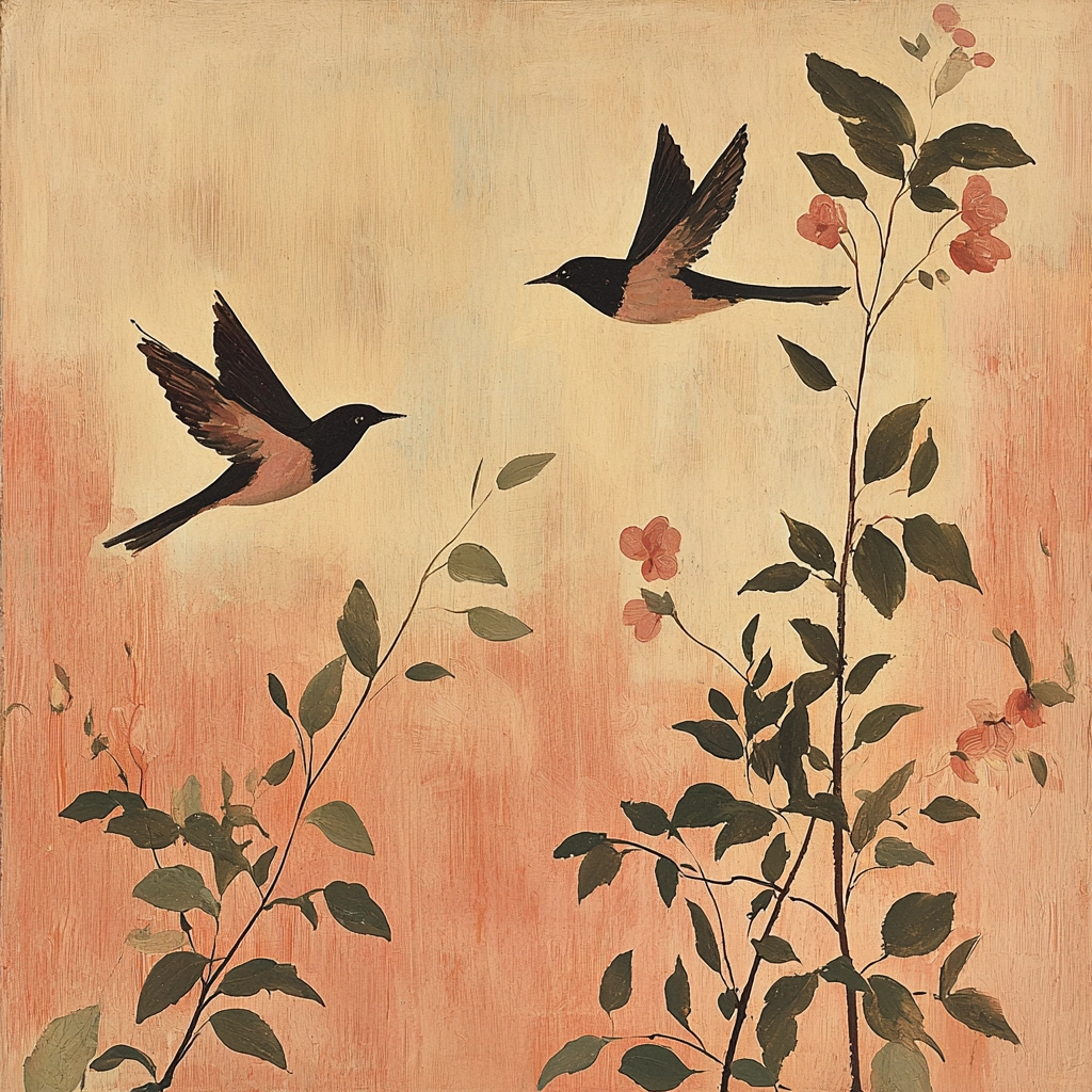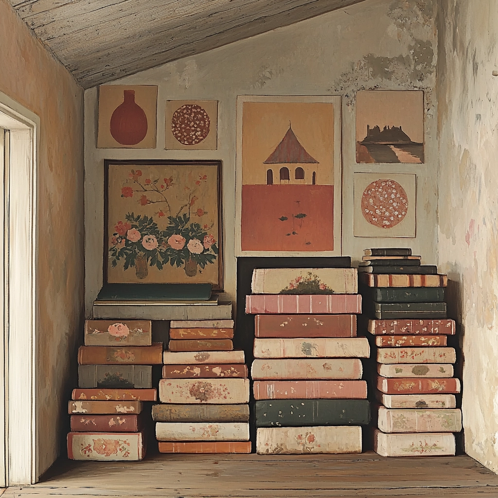 Gentle lighting emphasizes muted tones, creating an even and soothing visual experience. Colors blend with subtle gradients, and textures have a rough yet refined layered appearance, evoking depth.