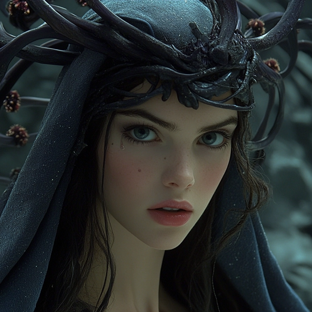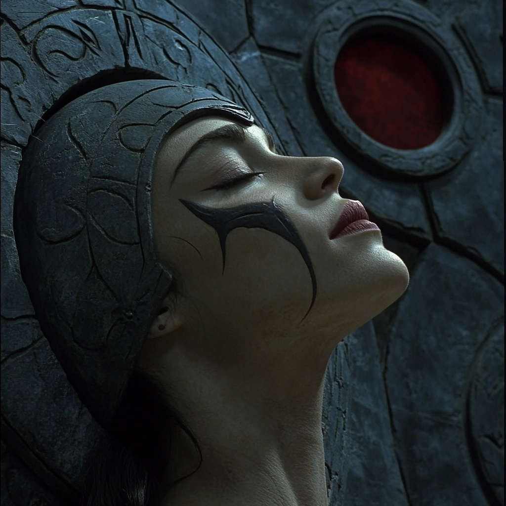 The imagery uses low lighting to create a moody effect, with dark blue and gray serving as the dominant colors. Textures are intricate, providing a palpable sense of depth that complements the muted palette.