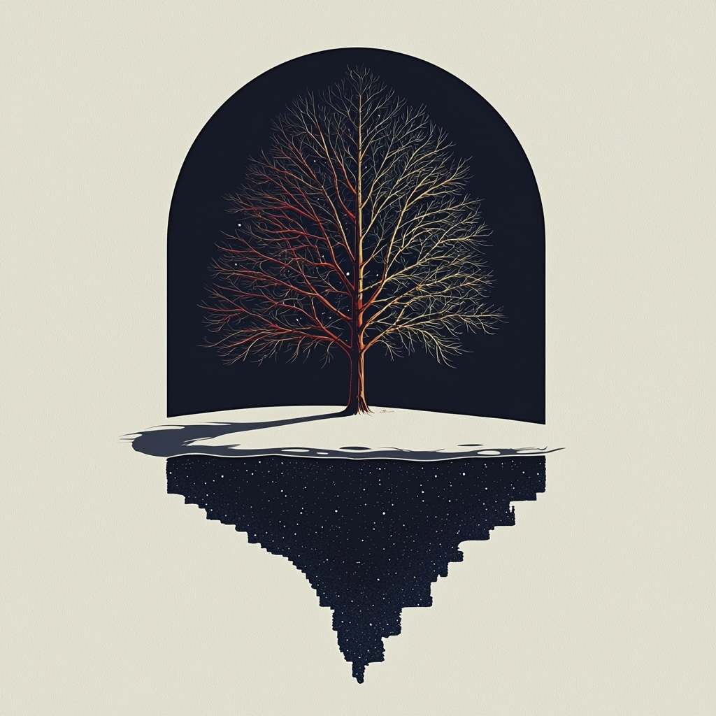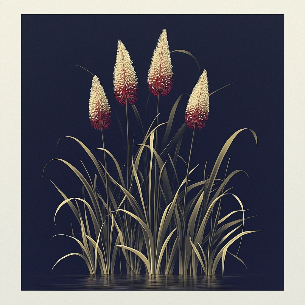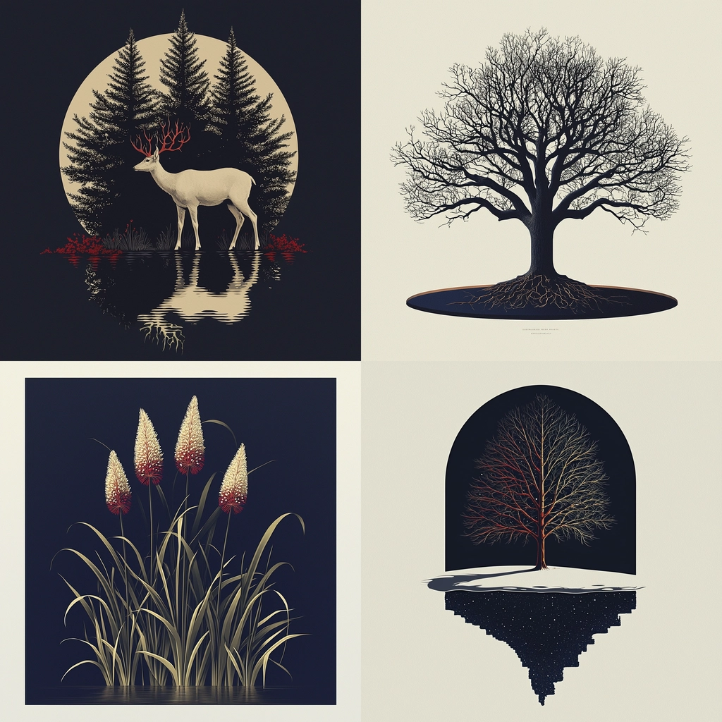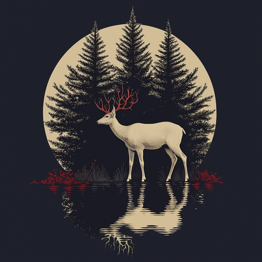 Bold contrasts with deep blacks and crisp whites, accented by vibrant reds.