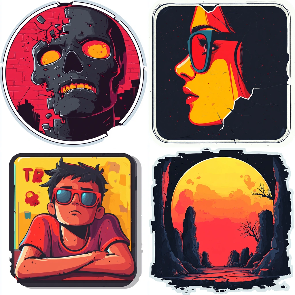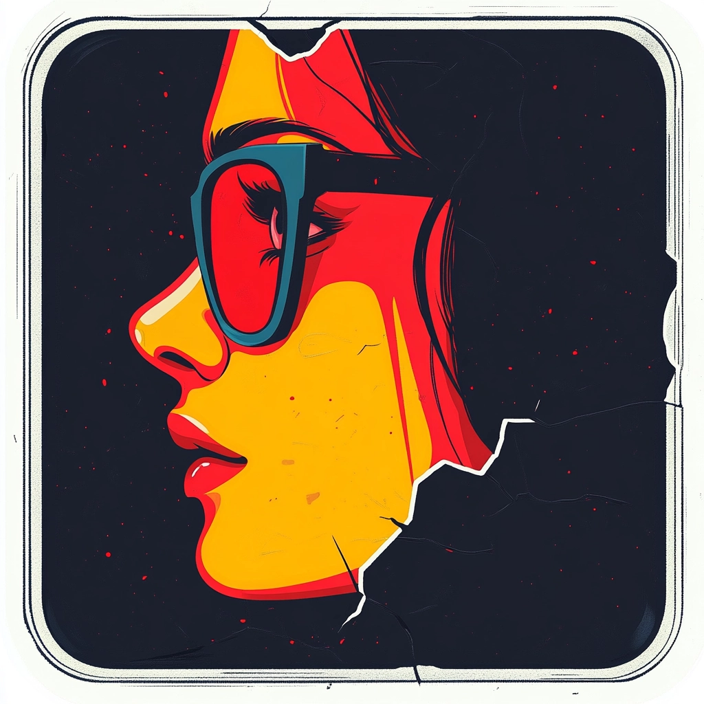 Vivid color blocks and stark contrasts create a dynamic visual impact.