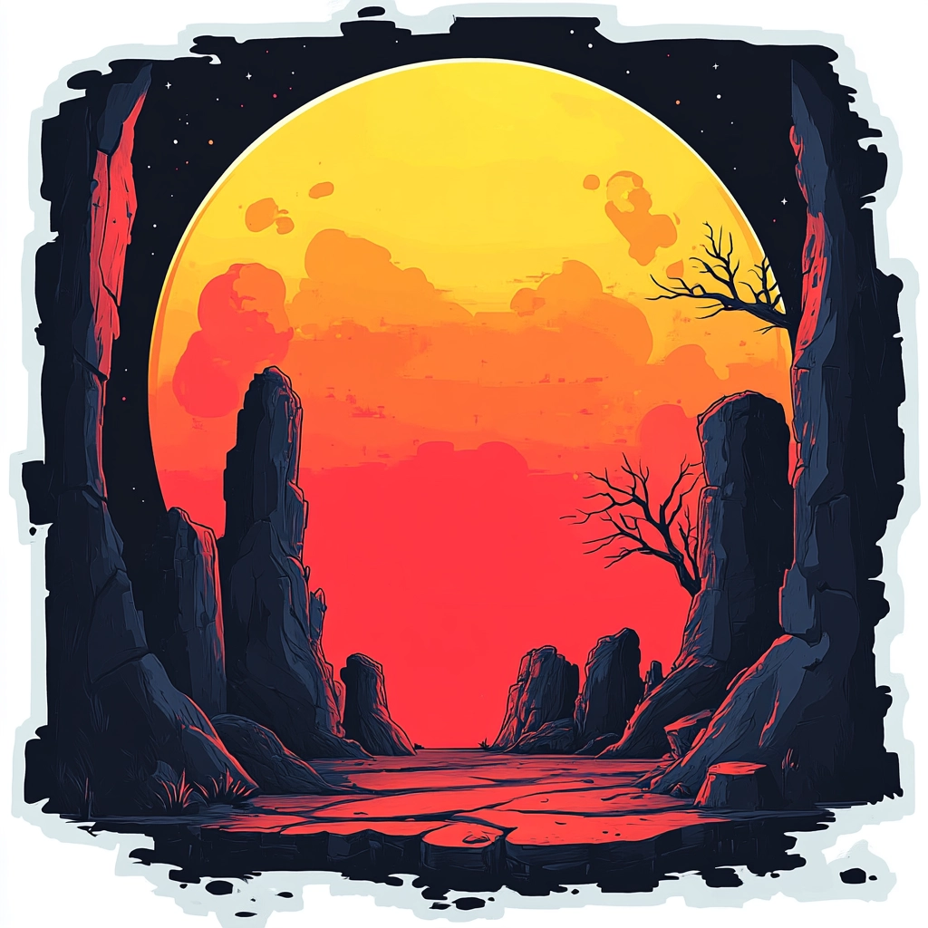 The use of neon-like colors enhances the lighting, creating a glowing effect with sharp contrasts. The sense of spatial depth is amplified by the juxtaposition of light and dark tones, while a textured appearance suggests a layered composition.