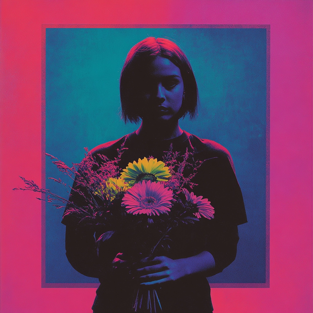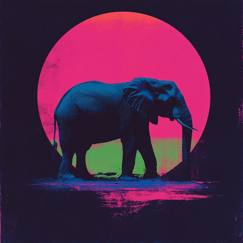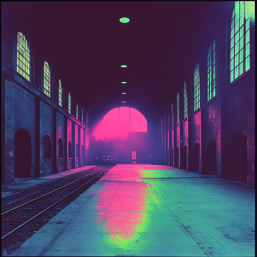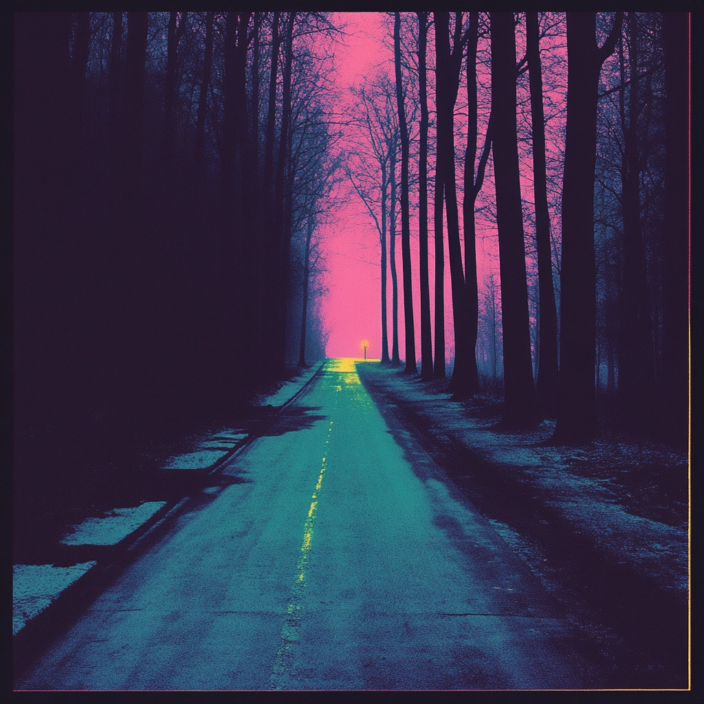 Vivid neon colors create sharp contrasts and stark outlines, enhanced by intentional lighting effects, providing a sense of depth and bold texture through layered hues.