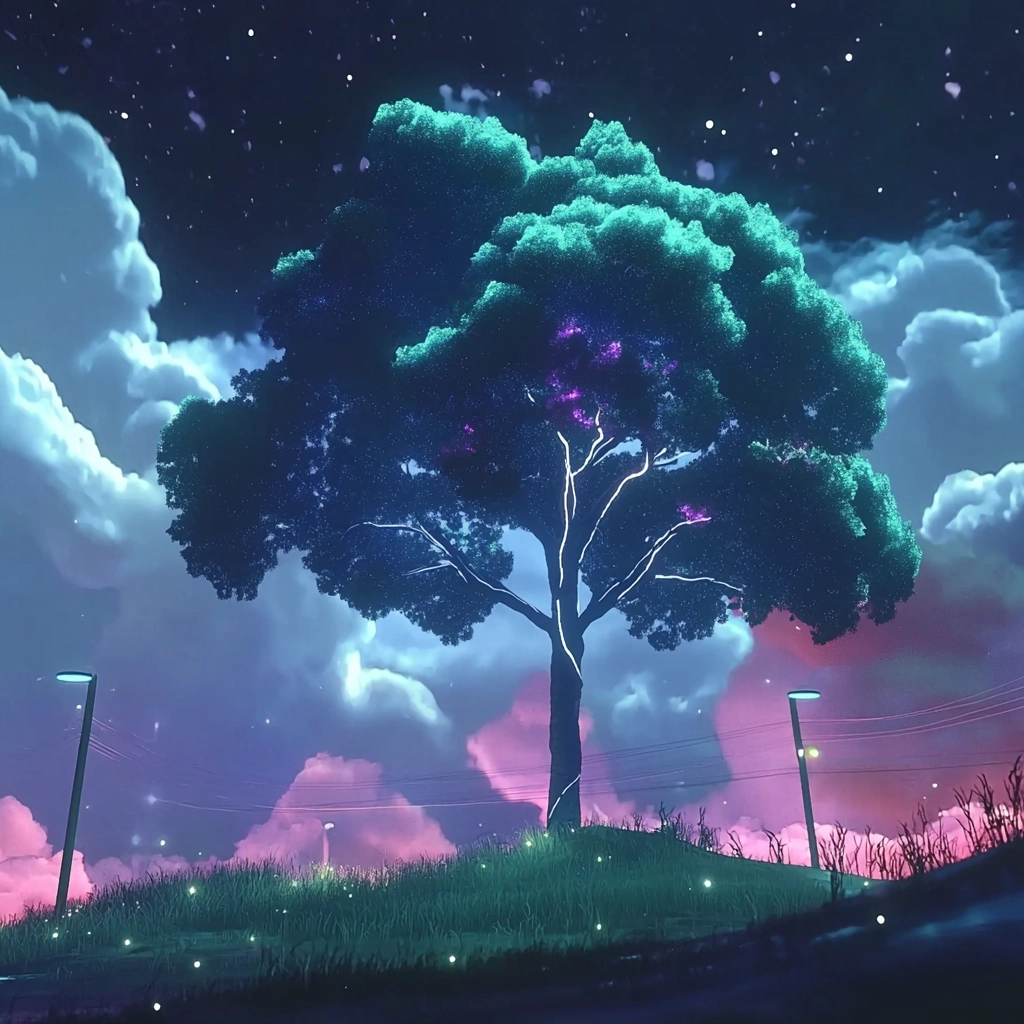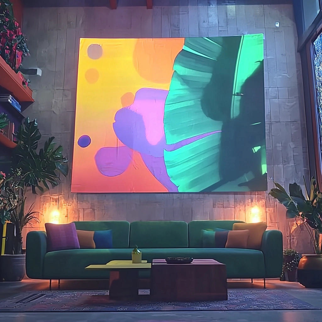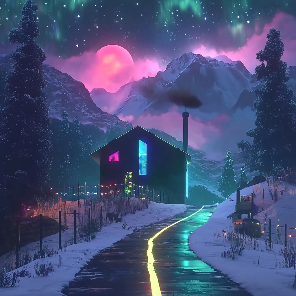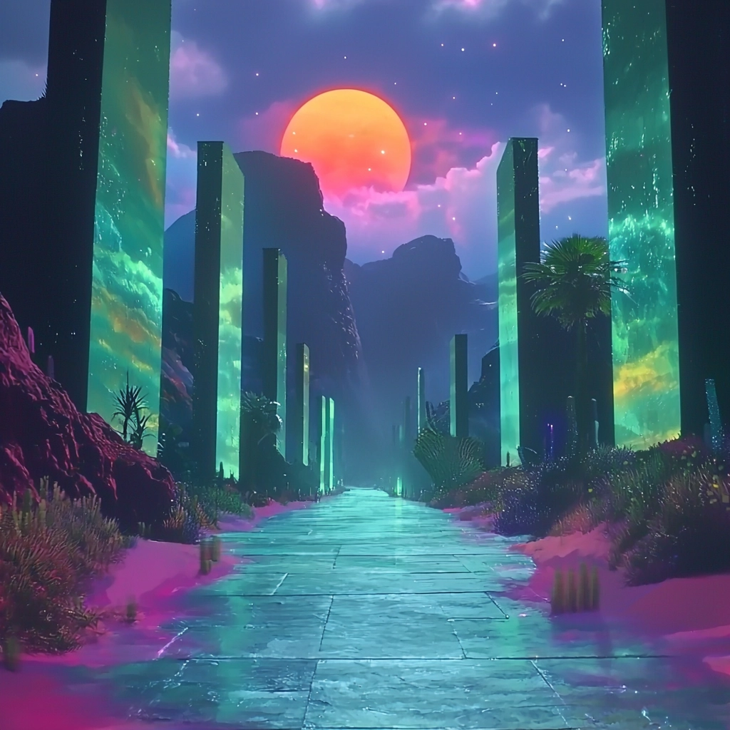 Vivid neon contrasts against subdued pastels with dynamic landscapes.
