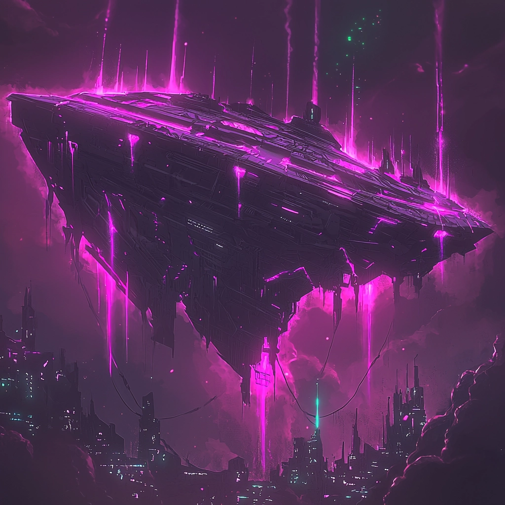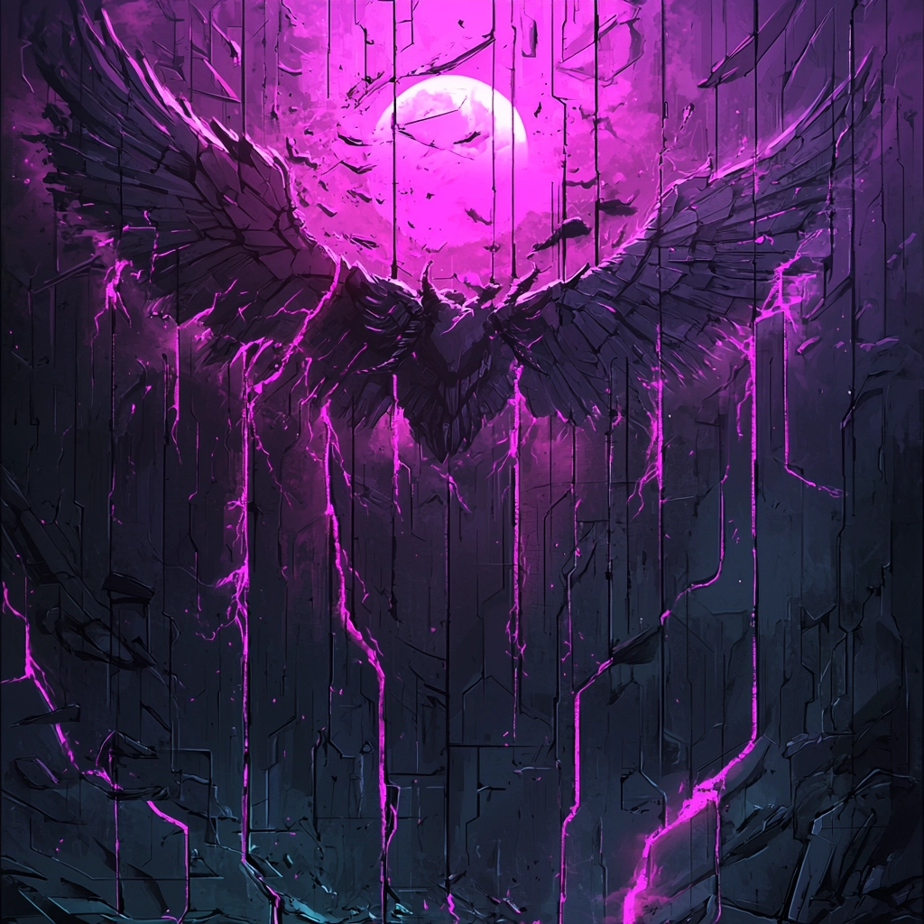 The composition utilizes vibrant pink and dark blue to establish a dynamic and futuristic atmosphere.