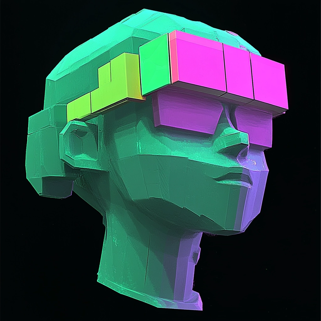 Vibrant neon color blocks form futuristic geometrical shapes.