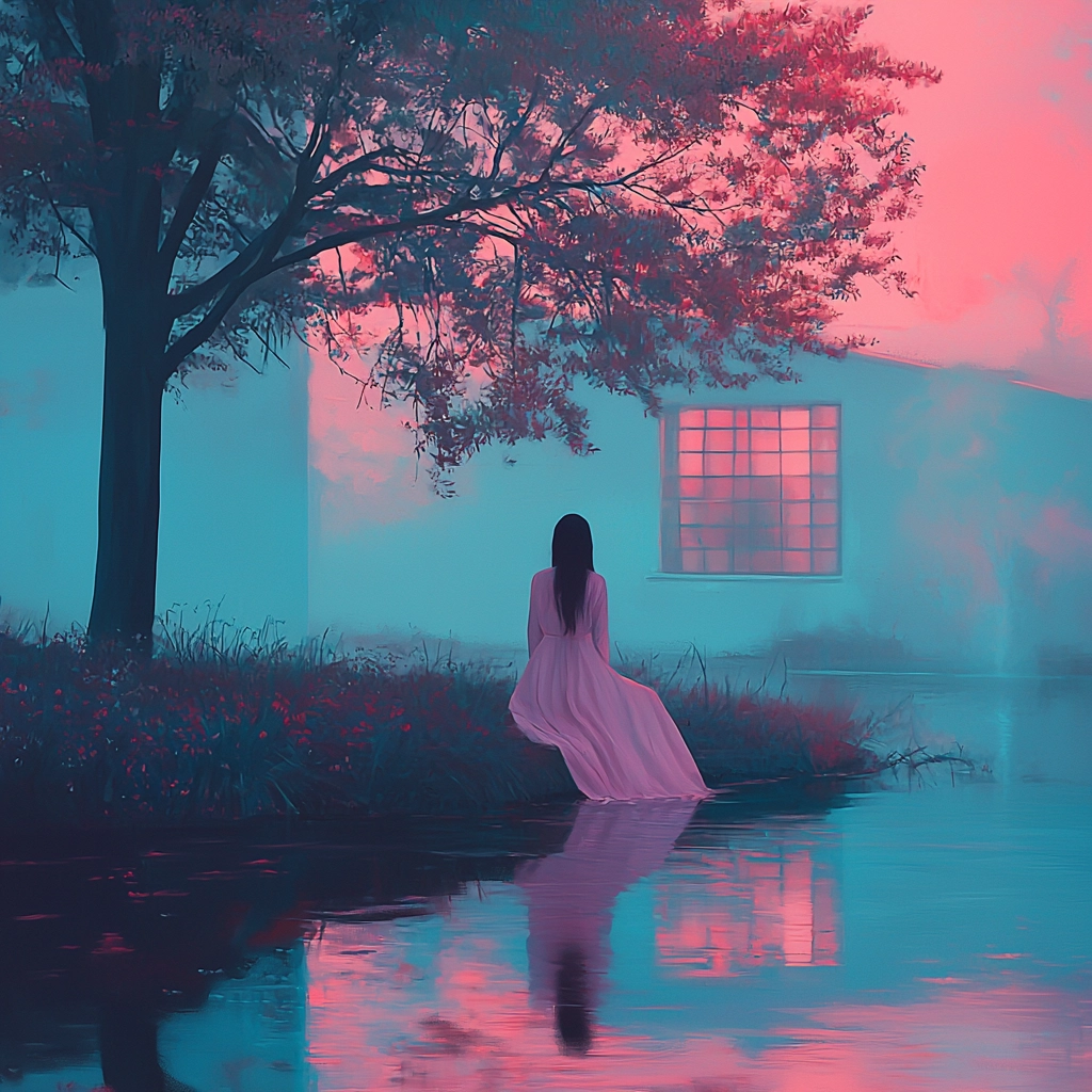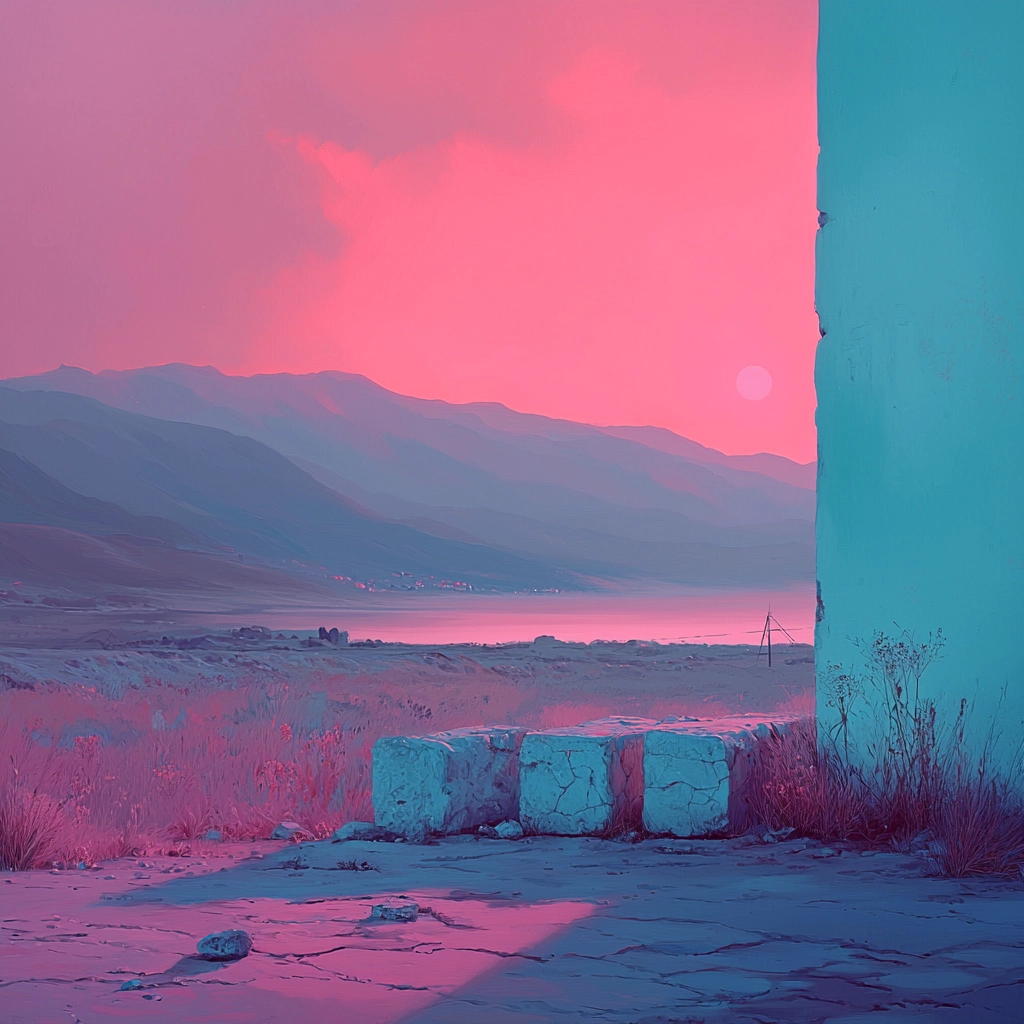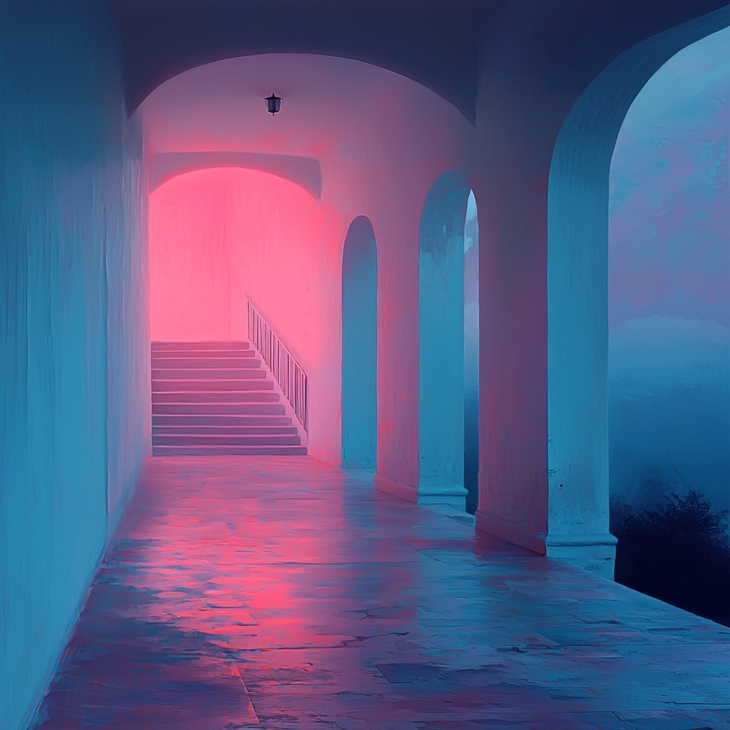 The lighting enhances a deep sense of dimension, with vibrant pink and blue hues blending to form soft, diffused edges. The texture is smooth yet distinct, conveying a spacious, immersive atmosphere.