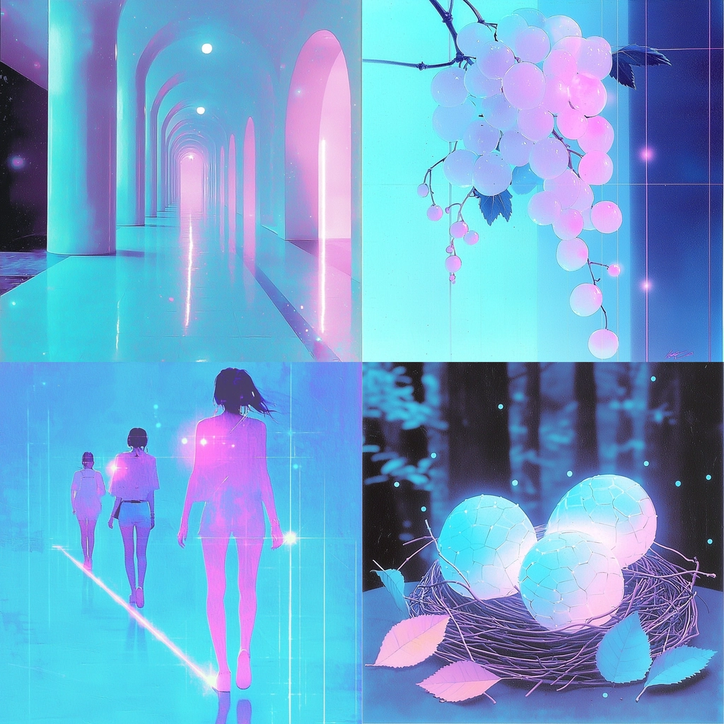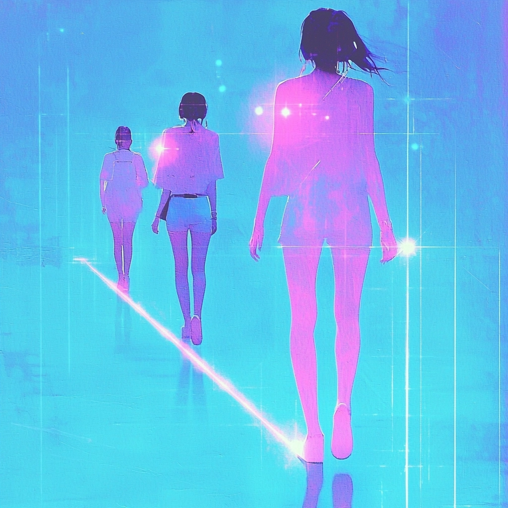 Cyan and pink create vibrant contrasts with luminous digital effects.