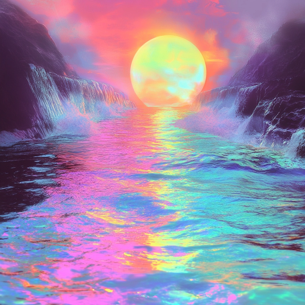 Intense lighting effects amplify the vivid tones, creating strong contrasts between the bright and dark areas. The smooth texture enhances the fusion of colors, giving depth and dynamism to the spatial sense of the scenes depicted.