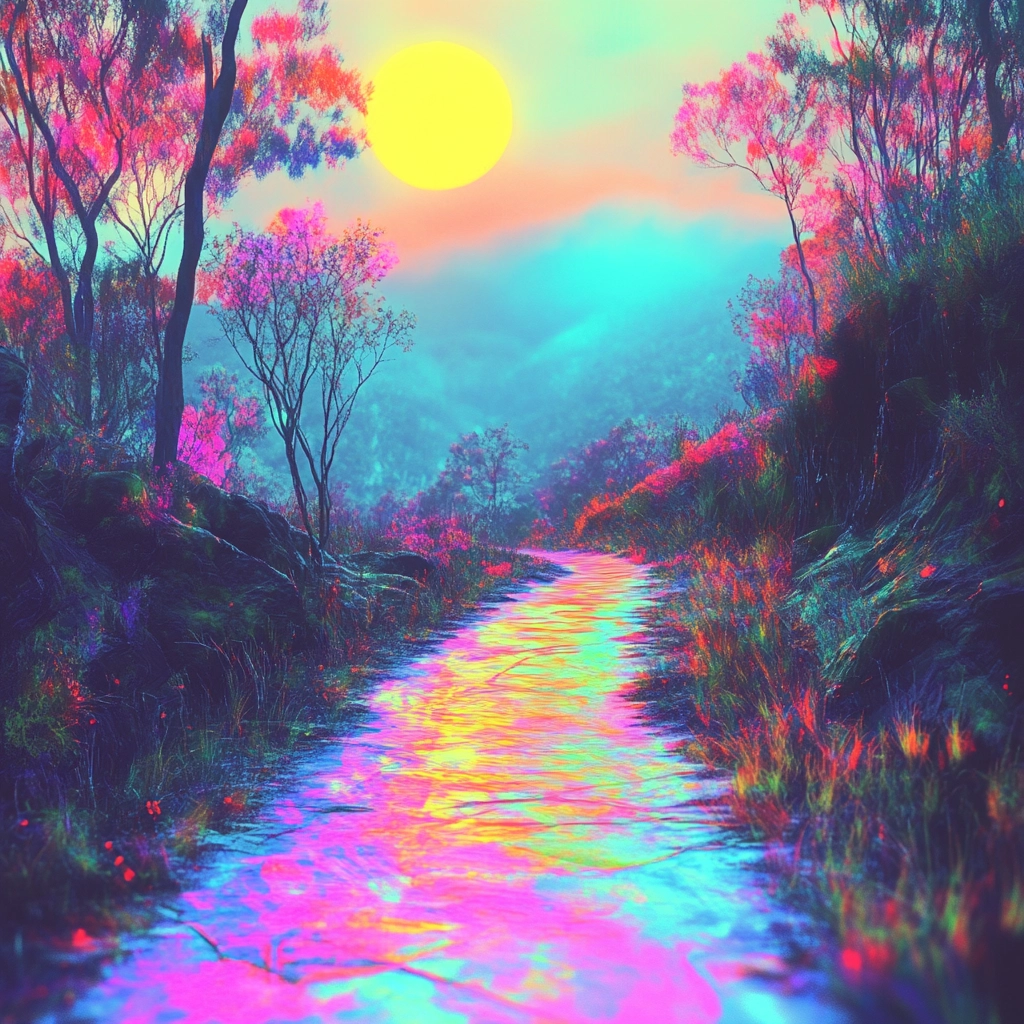 Bold neon colors blend seamlessly to create vibrant compositions.