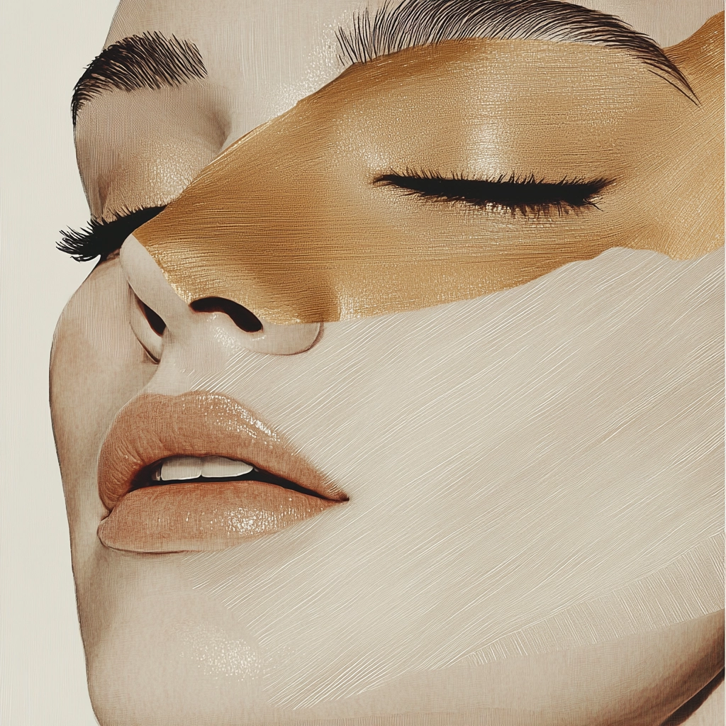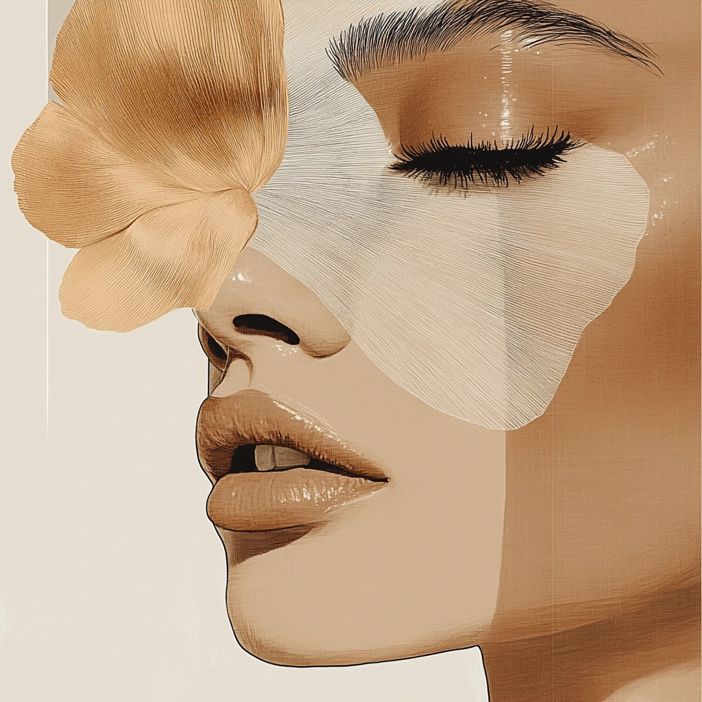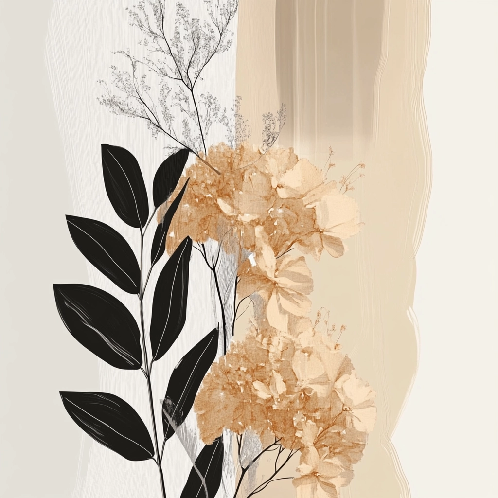 Soft lighting enhances beige dominance, creating subtle contrasts against black and white forms. The textured backgrounds and layered compositions evoke a sense of depth.