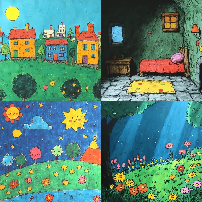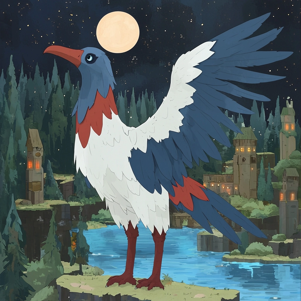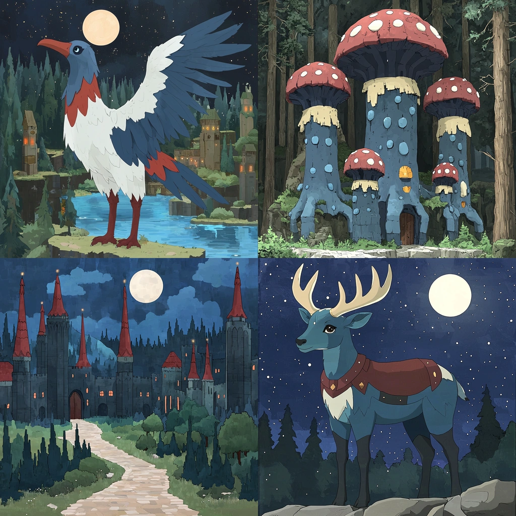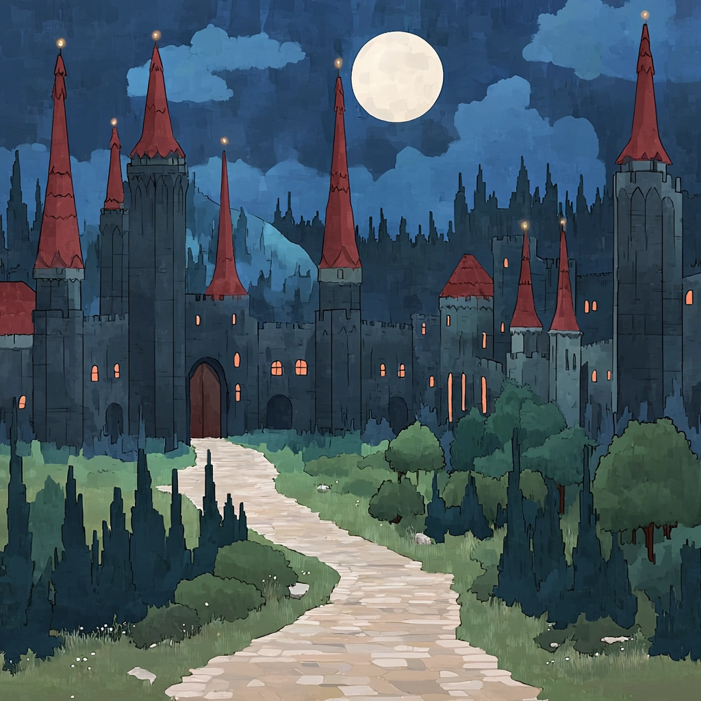 Soft, diffused lighting highlights muted hues within a fantastical night landscape, while the textures capture a sense of depth and detail, creating a rich visual narrative.