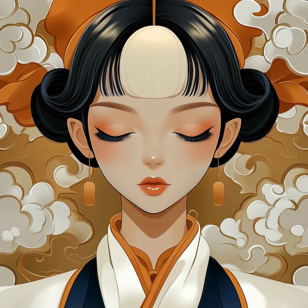 Prominent use of flowing lines and swirls enhance movement, with an emphasis on a smooth gradient of color transitions. The layout maintains a balance with organic elements and controlled precision.