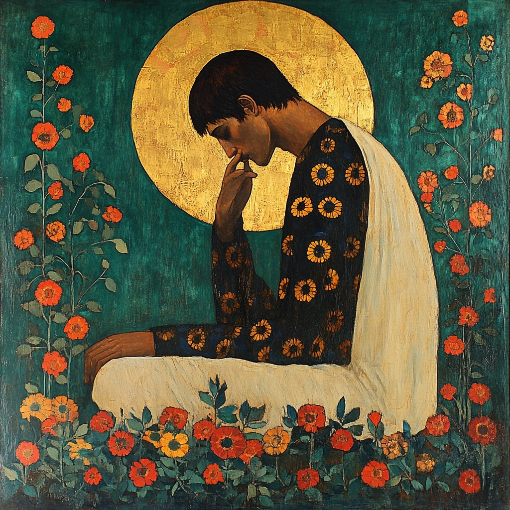 The use of gold creates striking highlights against a green base, enhancing depth. The composition features delicate floral motifs, providing ornamental elegance with a textured finish. Fine details and a decorative approach convey a sense of crafted sophistication.