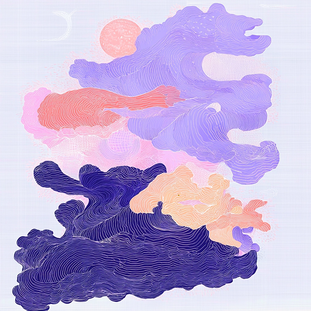 Soft pastel tones blend with bold indigo to create an intriguing visual contrast. Delicate lines suggest a subtle texture that invites closer inspection. Light and shadow interplay heightens depth perception, adding an element of movement or flow.
