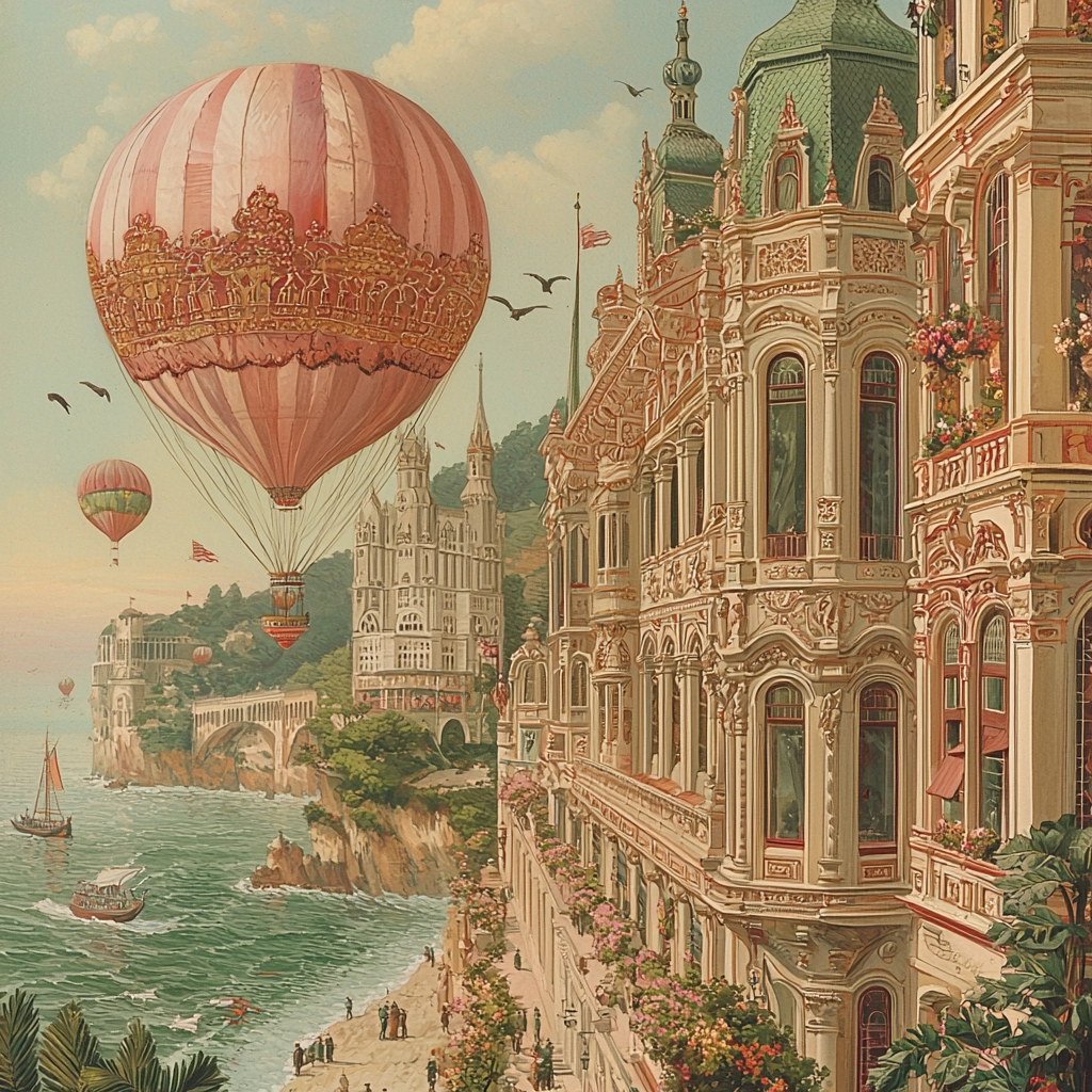 A delicate blend of pastel hues capturing finely detailed architectural and natural elements.