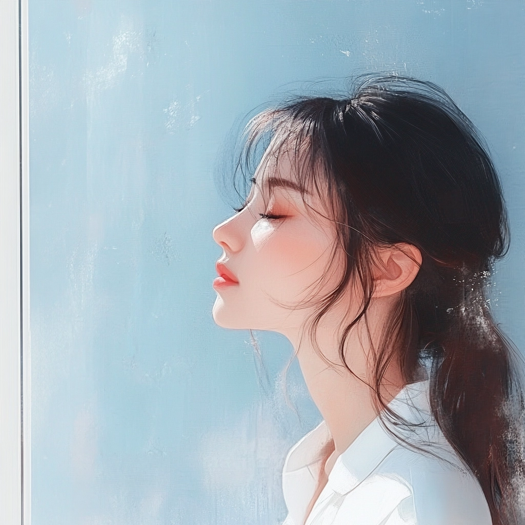 The lighting is gentle and diffused, casting soft shadows that enhance the pastel shades. Blue dominates the composition, creating a serene backdrop with subtle touches of white and pink. The minimal detailing allows for an airy spatial sense, while the textures suggest a gentle tactile quality.