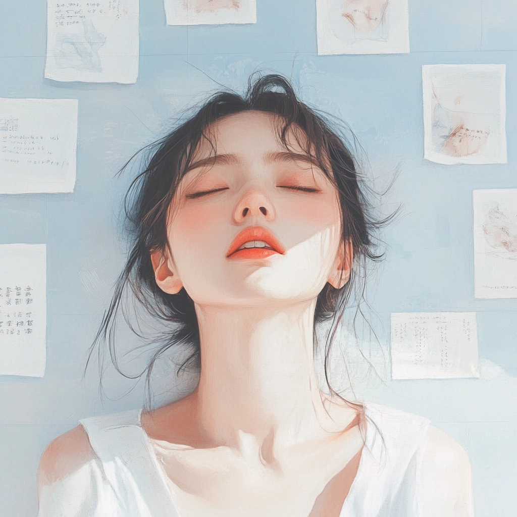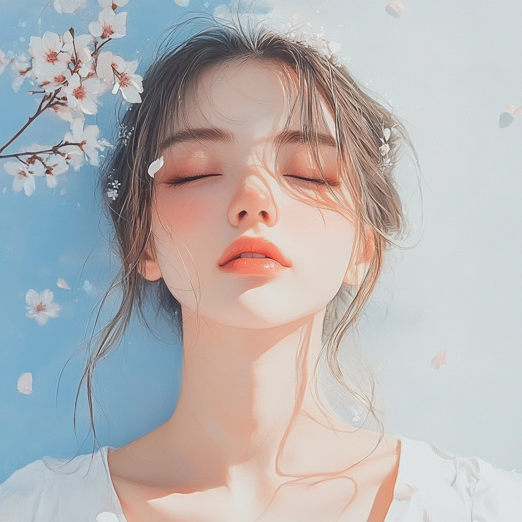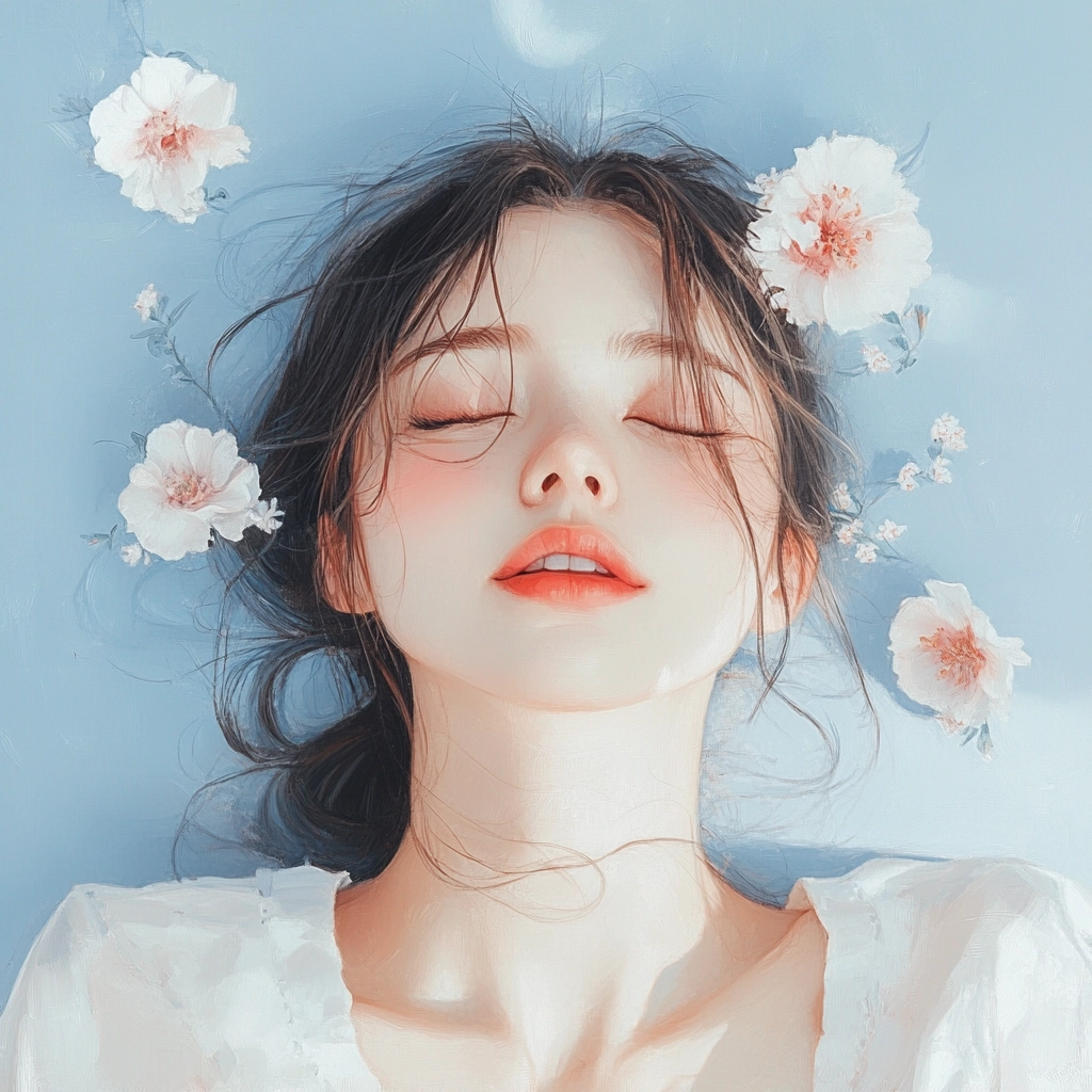Soft pastel colors frame delicate floral elements against a minimalist backdrop.